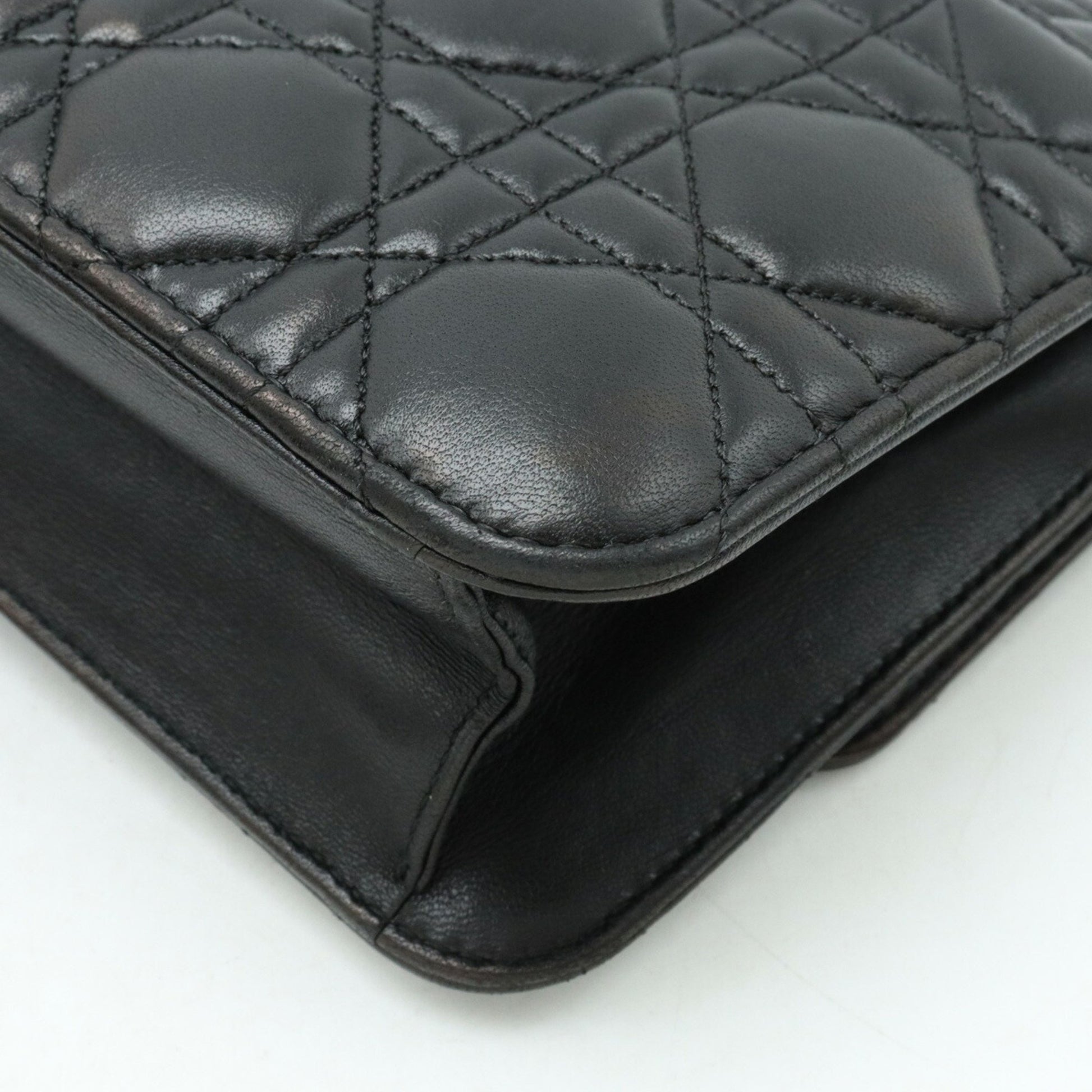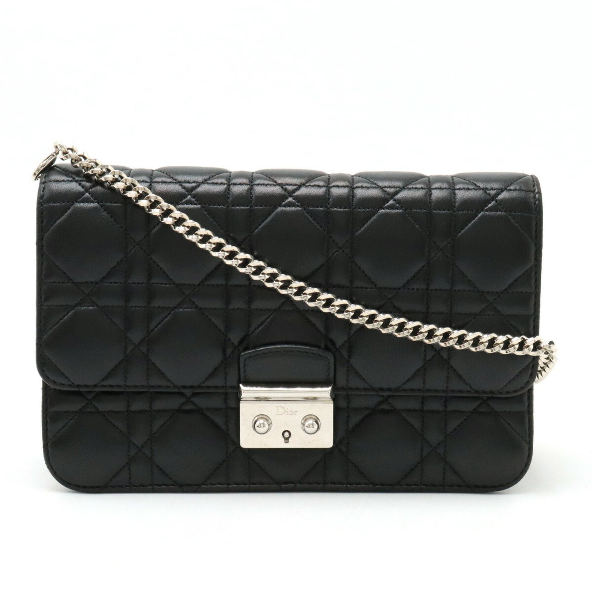 Christian Dior Miss Cannage New Rock Chain Wallet Clutch Bag Leather Black