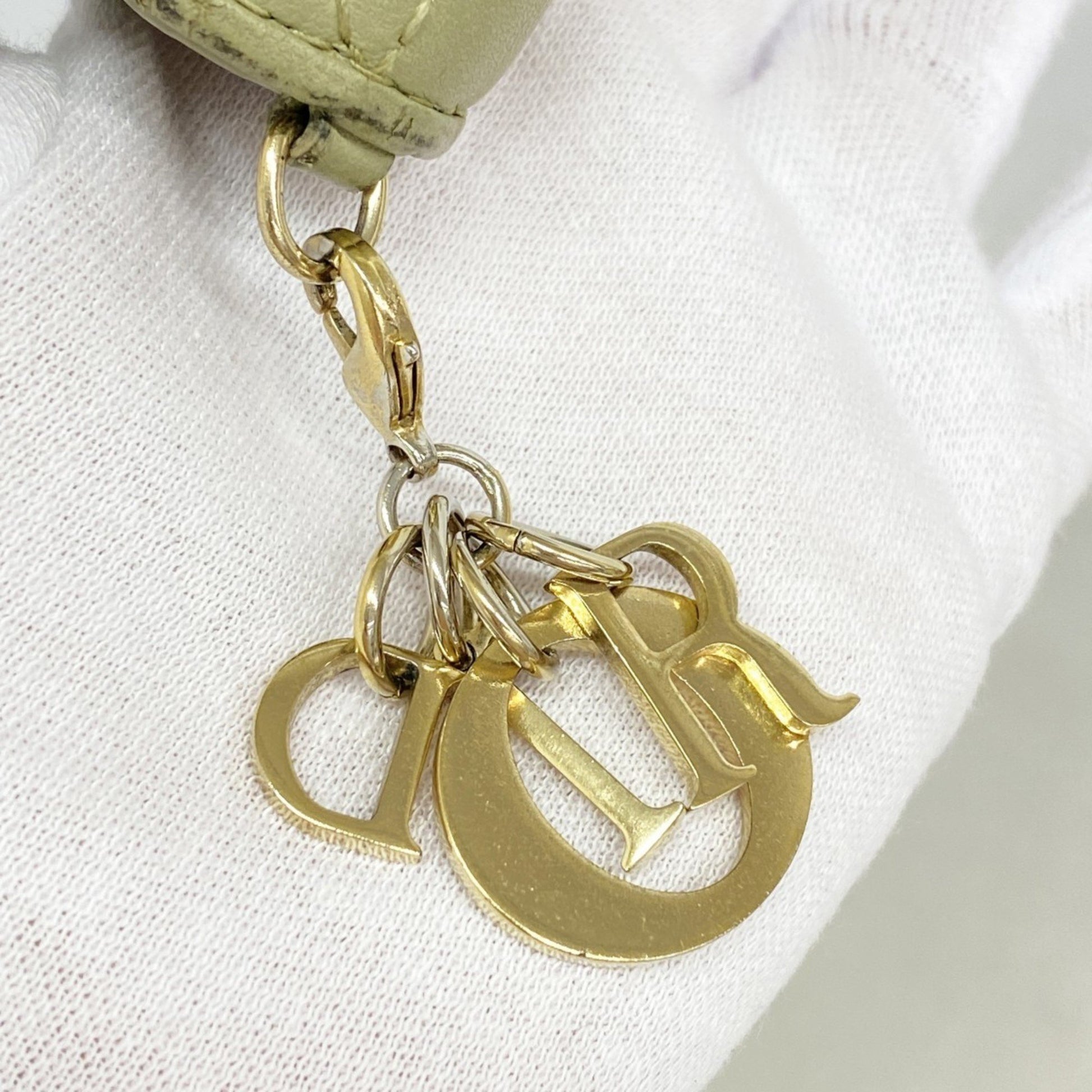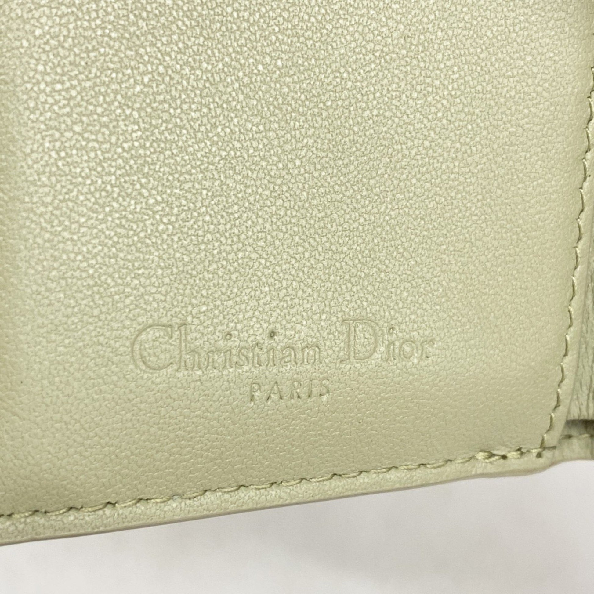 Christian Dior Tri-Fold Wallet Cannage Leather Green Champagne