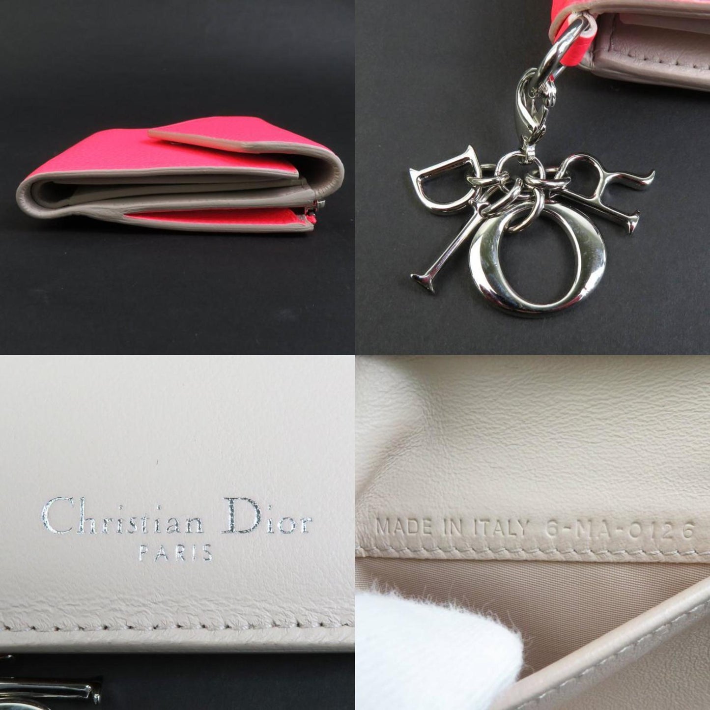 Christian Dior Tri-Fold Wallet Leather Neon Pink