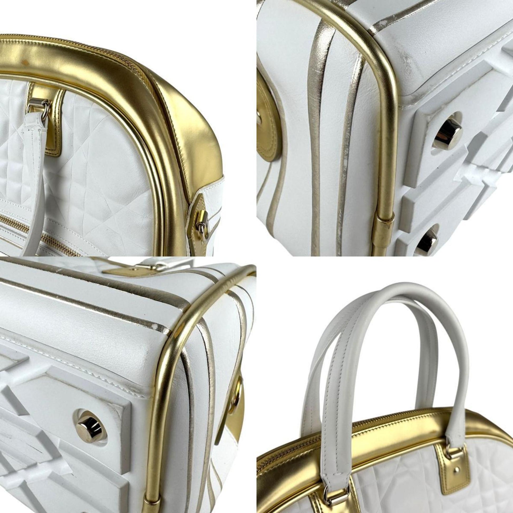 Christian Dior Vibe Medium Handbag Shoulder Bag In White And Gold