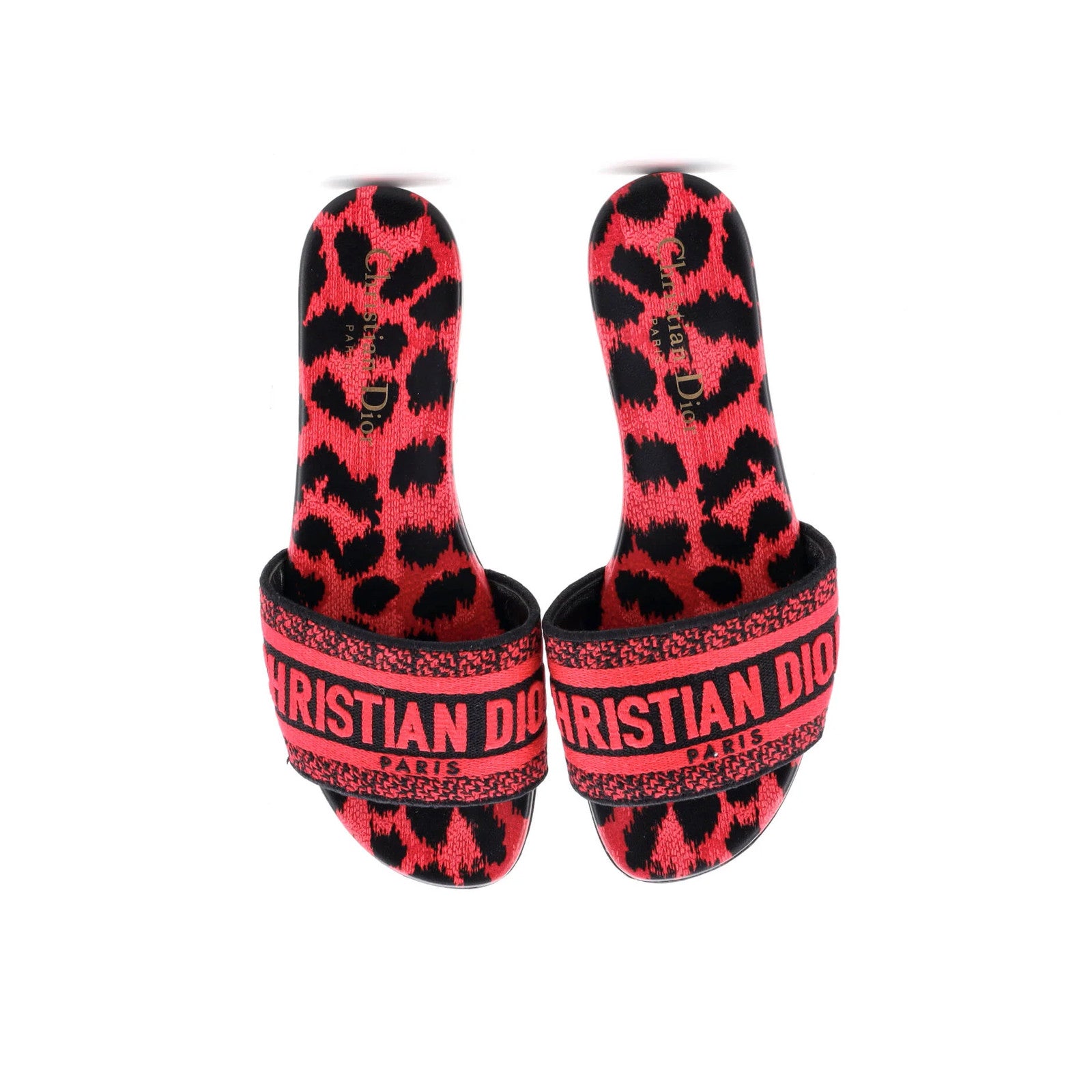 Christian Dior Women'S Dway Flat Sandals Embroidered Canvas