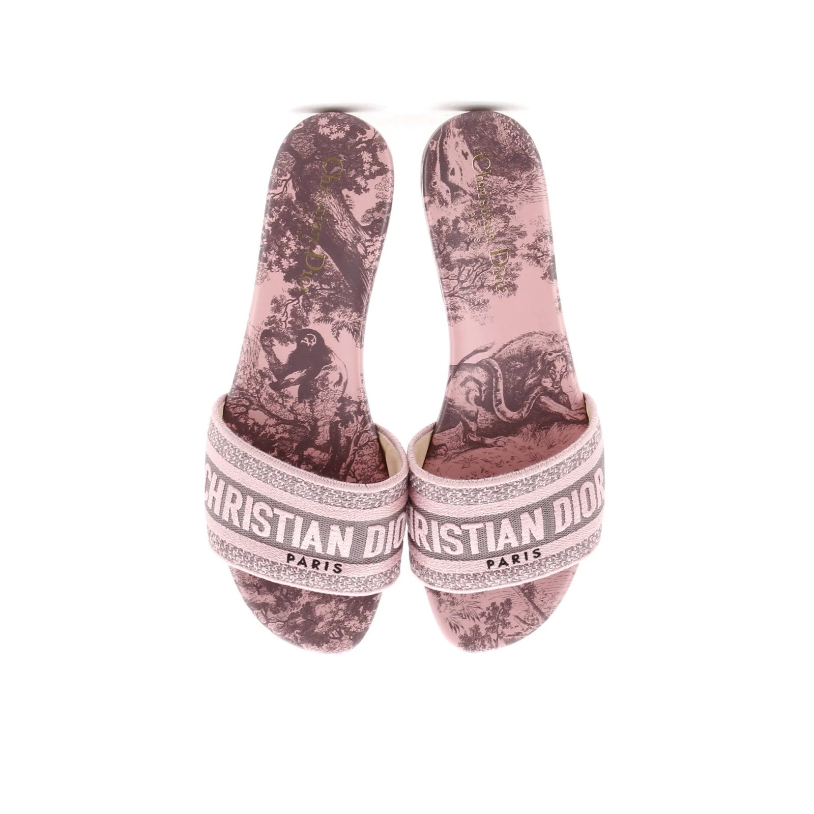 Christian Dior Women'S Dway Flat Sandals Embroidered Canvas