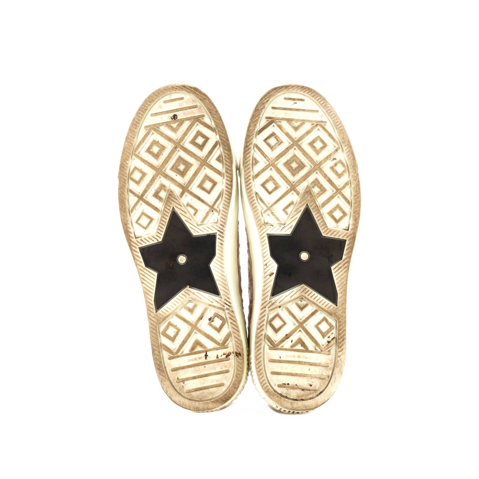Condition: Very good. Minor odor in interior. Creasing throughout, darkening and scuffs on midsoles and in interior, heavy peeling, darkening, and scuffs on outer soles, scratches on hardware.