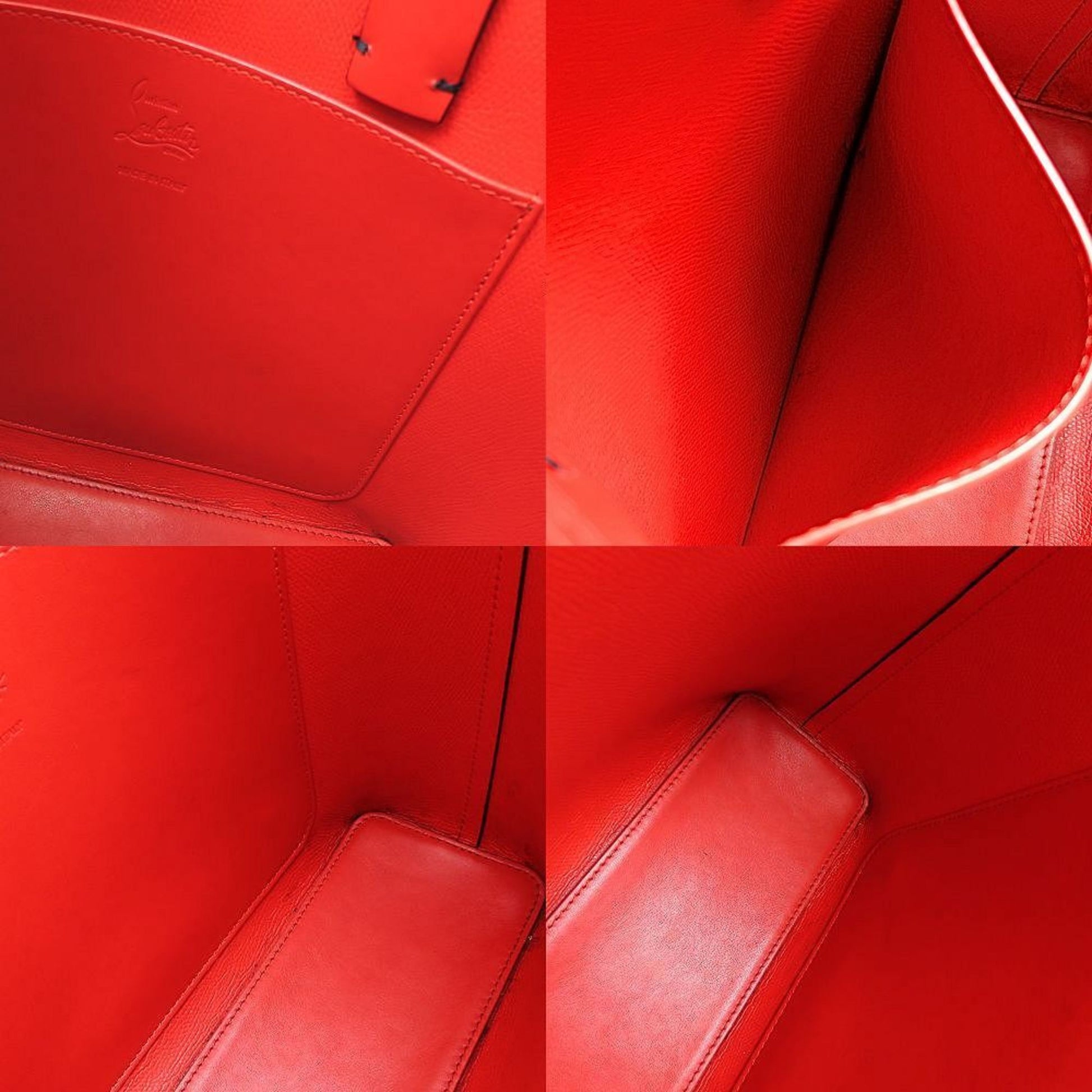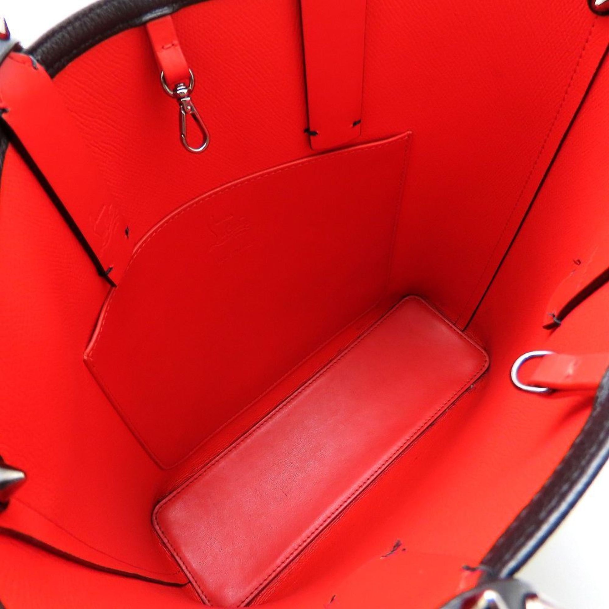Christian Louboutin 3205221 Handbag Studs Leather Black Red 352338