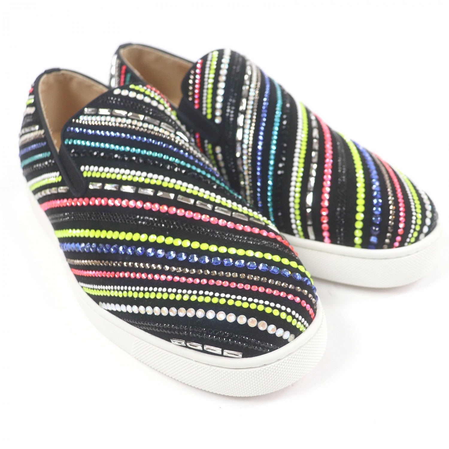Christian Louboutin Slip-On Suede Leather Black Boat Rays Flat Suede 40
