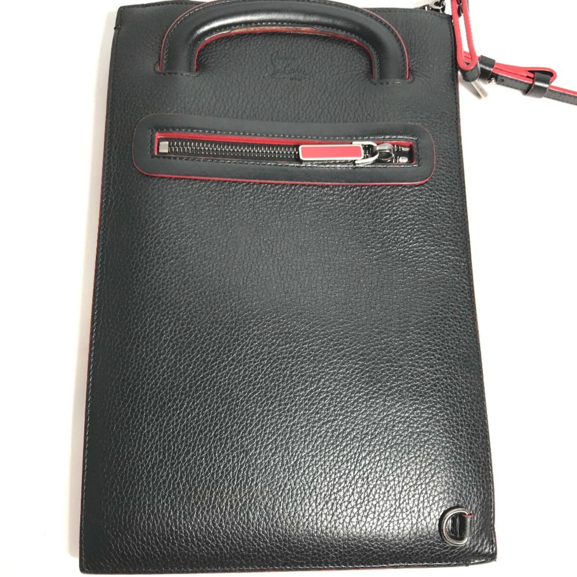 Christian Louboutin Spike Studs Clutch Bag Hand Bag Crossbody Pochette Shoulder Bag Black Red