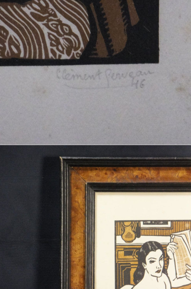 Clment Serveau 1946 Signed Woodcut "Two Reclining Nudes" French Art Deco