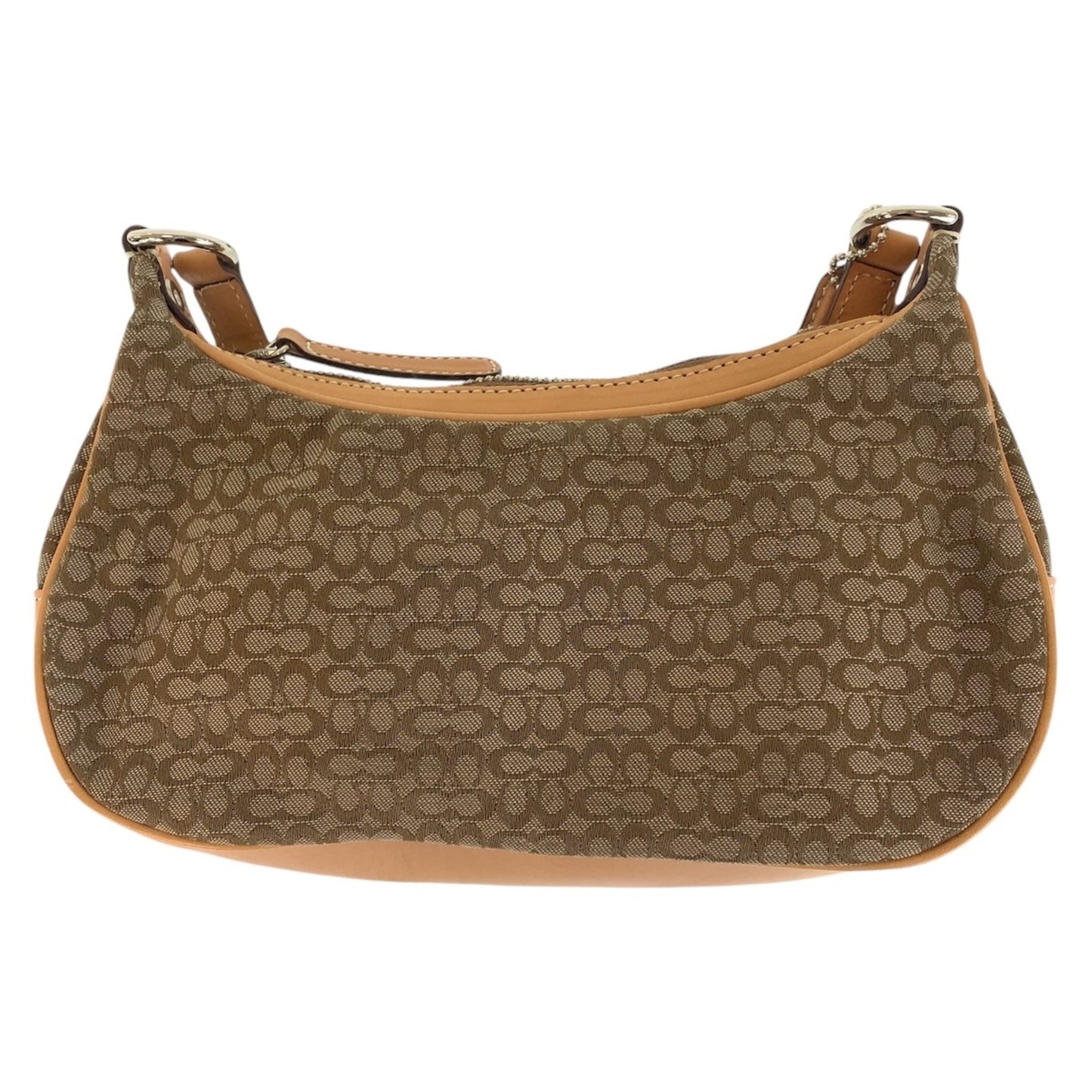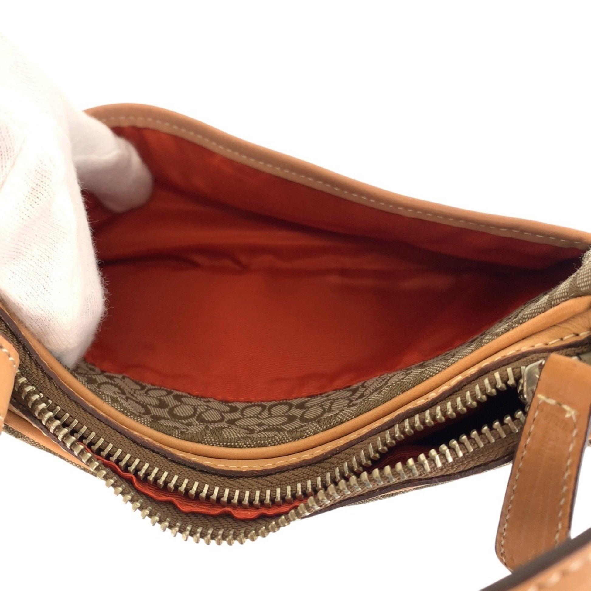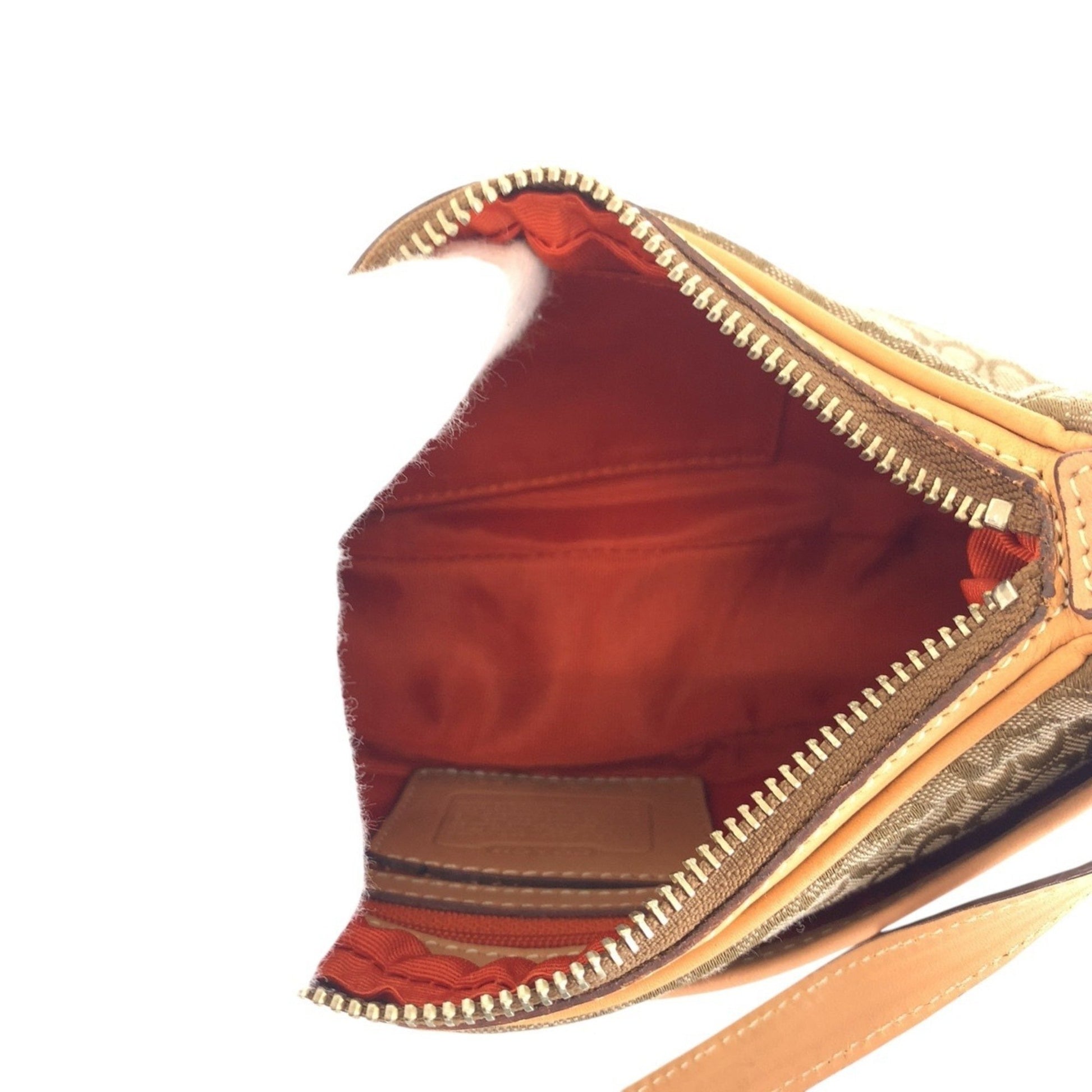 Coach Mini Signature Beige Silver Hardware Canvas Leather Shoulder Bag Pochette