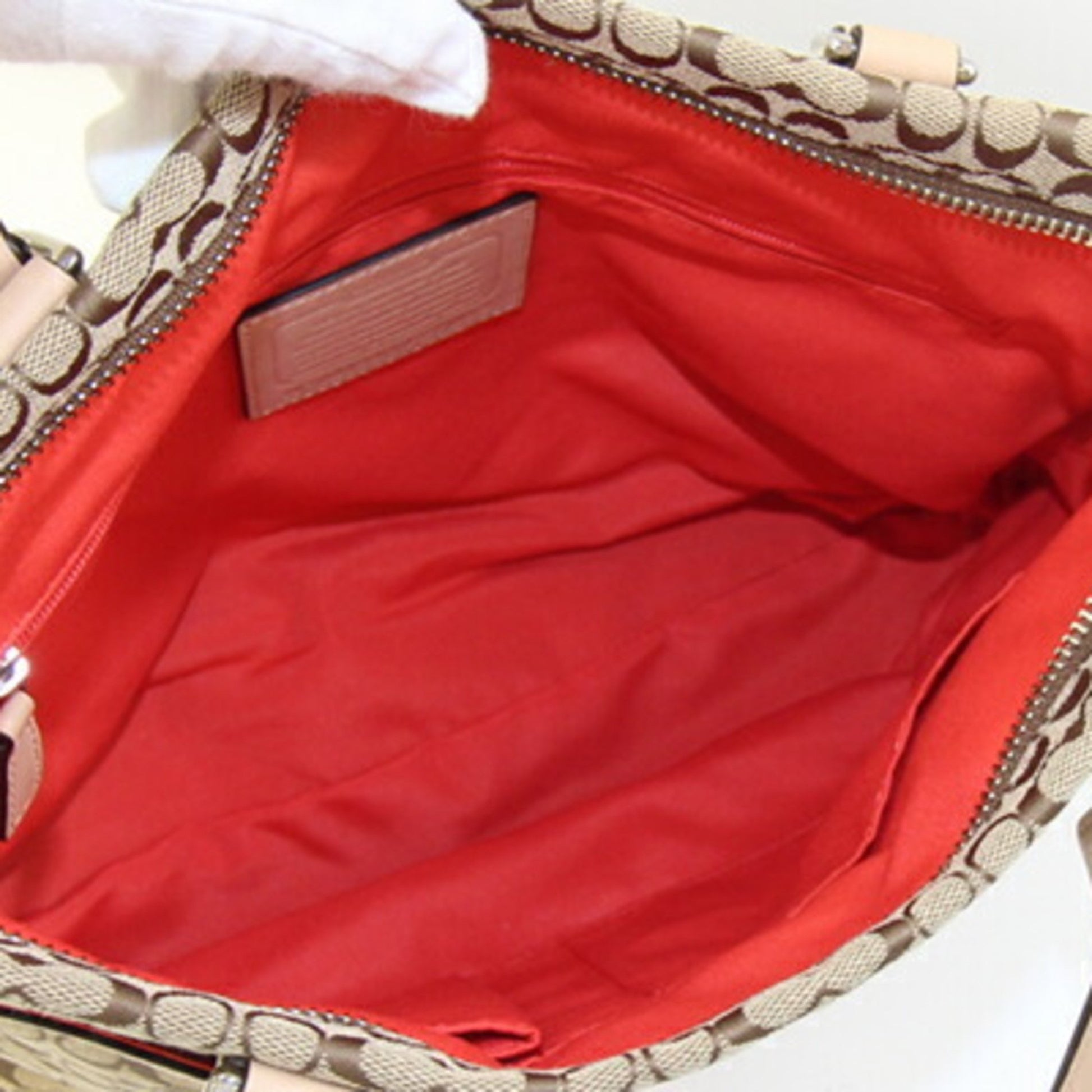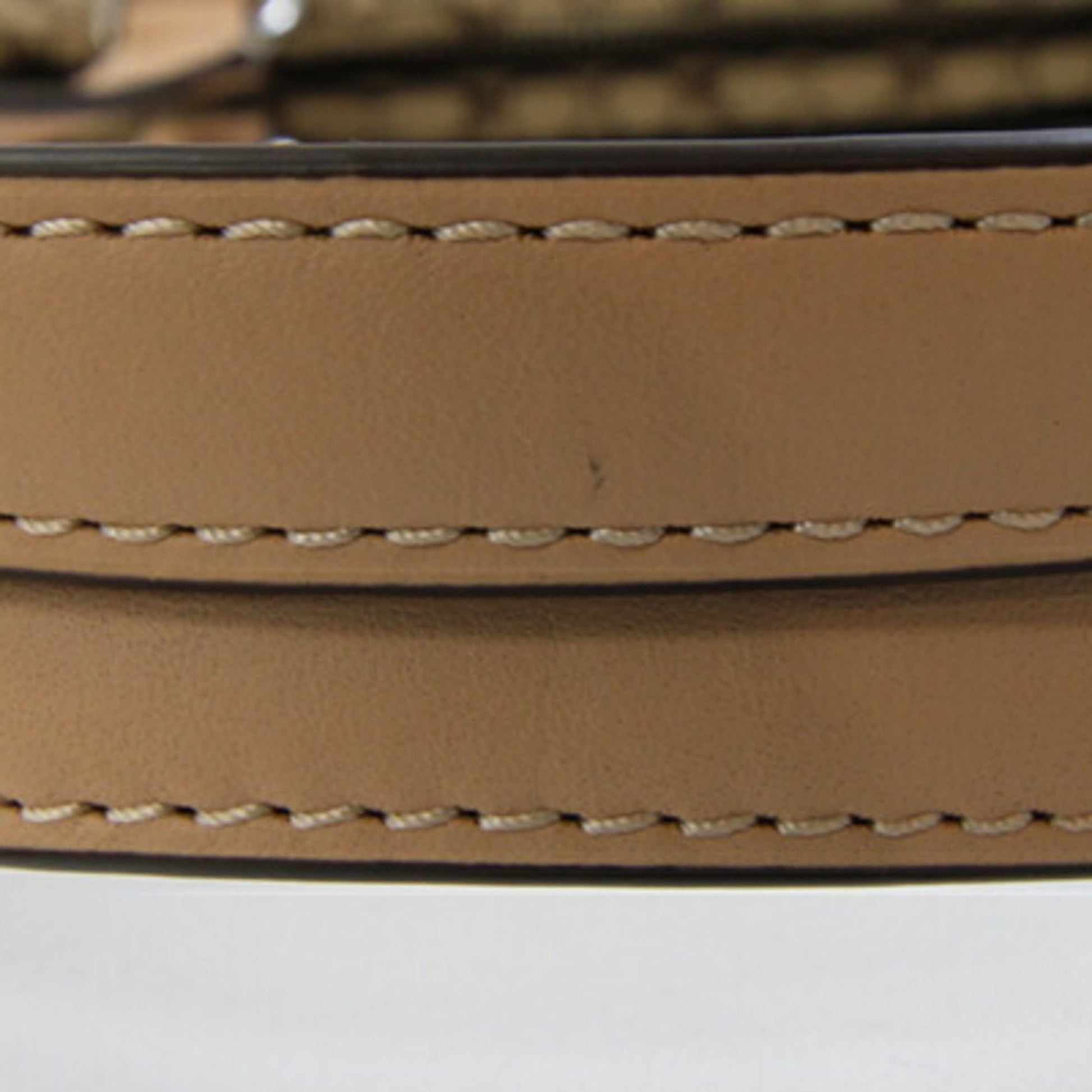 Coach Mini Signature Stripe File Tote Bag F27008 Khaki Beige Canvas Leather Shoulder