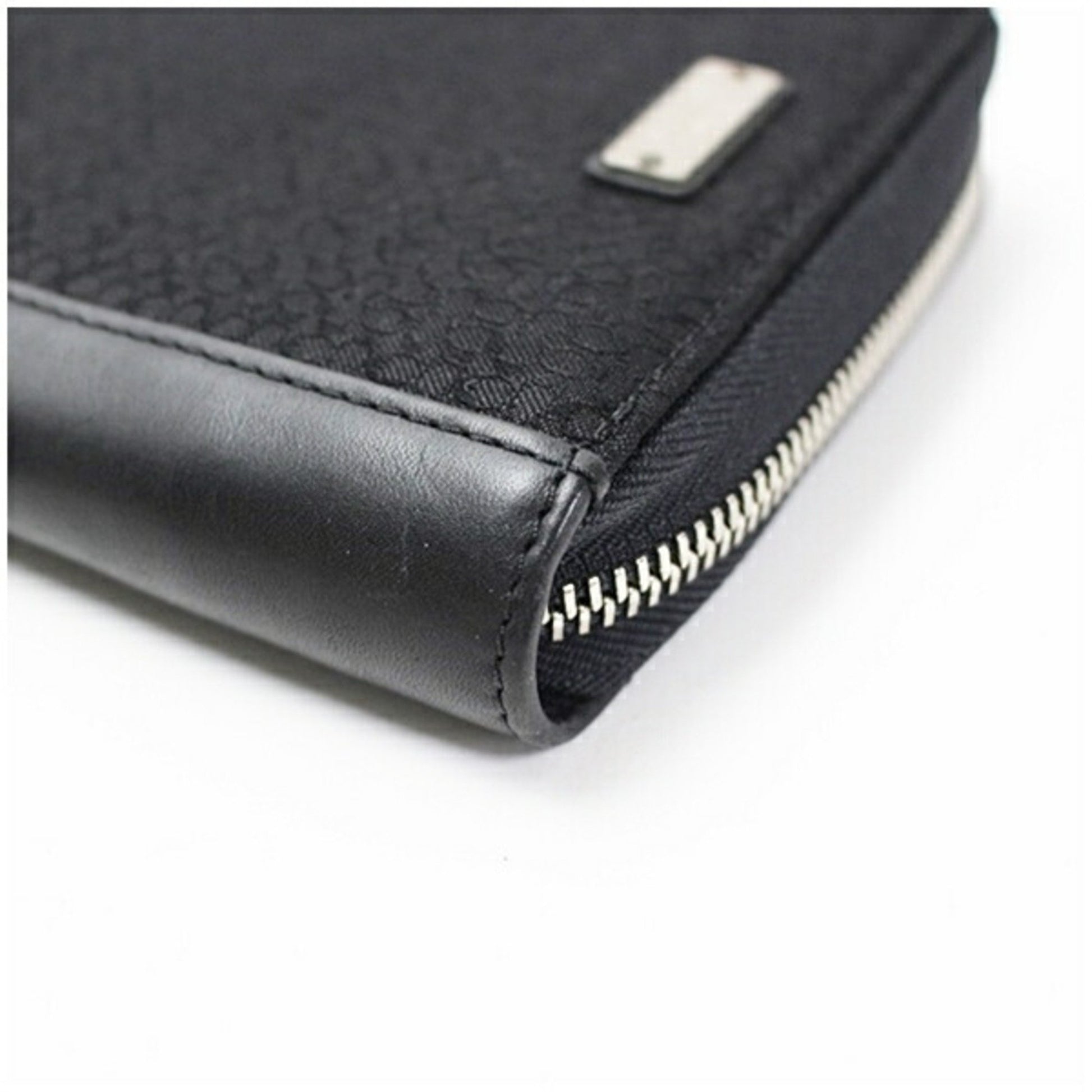 Coach Organizer Round Zip Long Wallet In Black Canvas And Leather