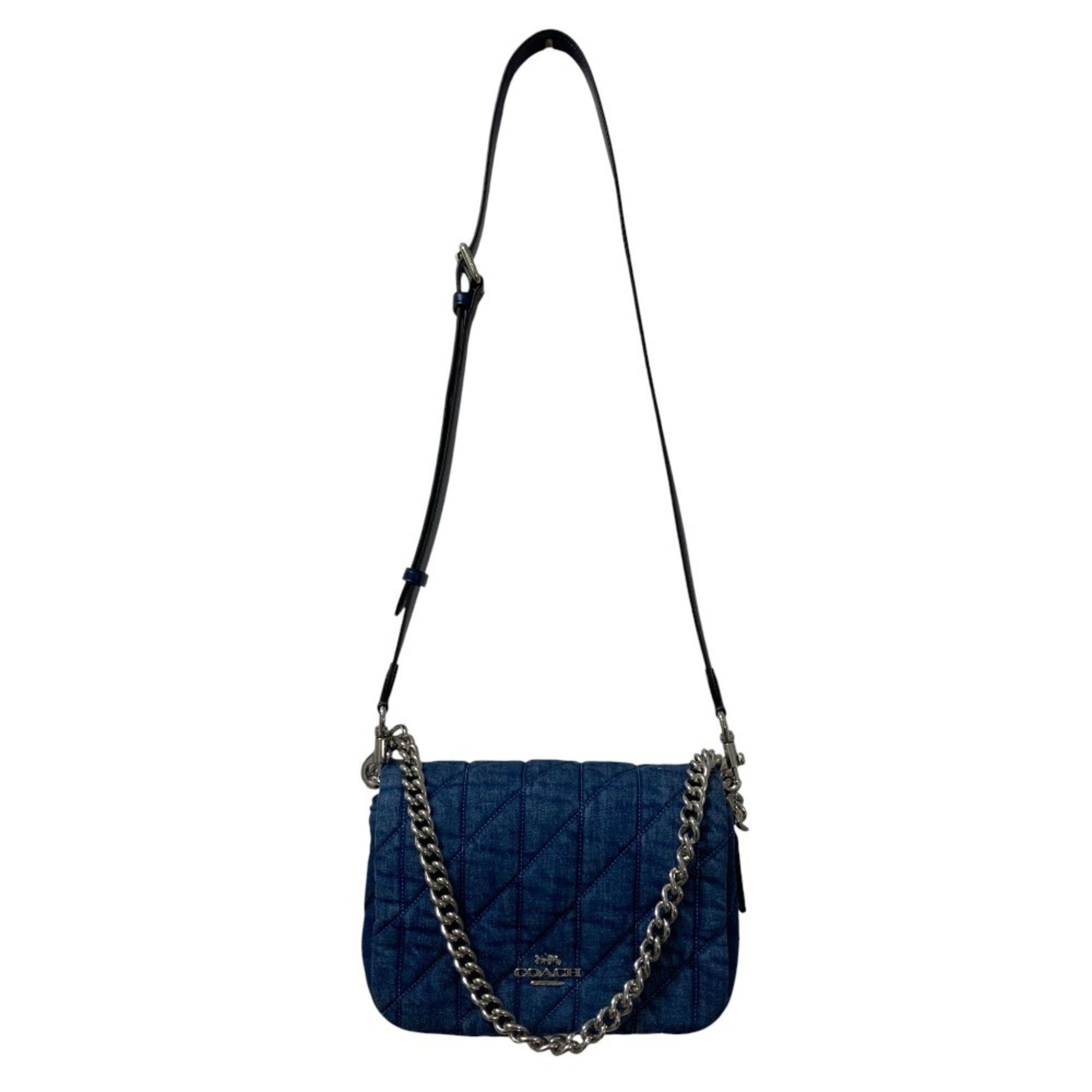 Coach Quilted Denim Chain Shoulder Bag Cak40 Blue