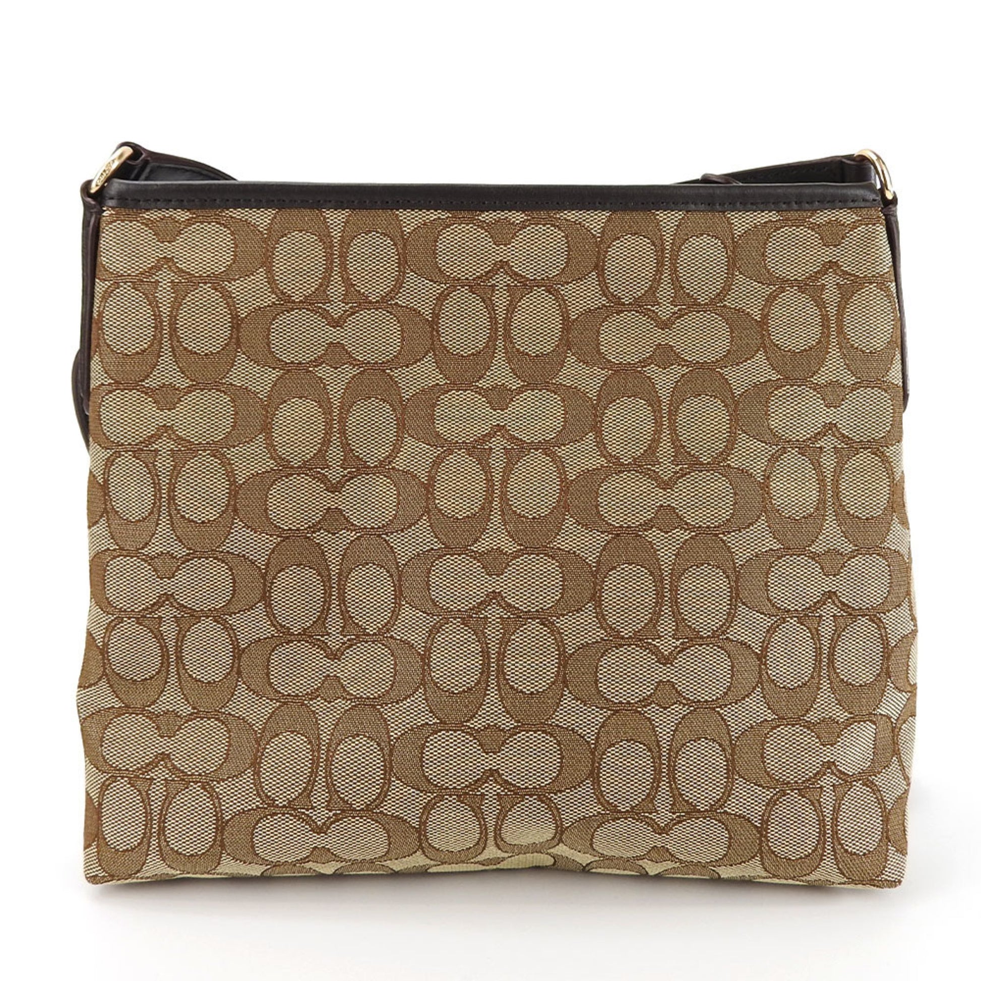 Coach Shoulder Bag F29960 Signature Canvas Leather Beige Dark Brown
