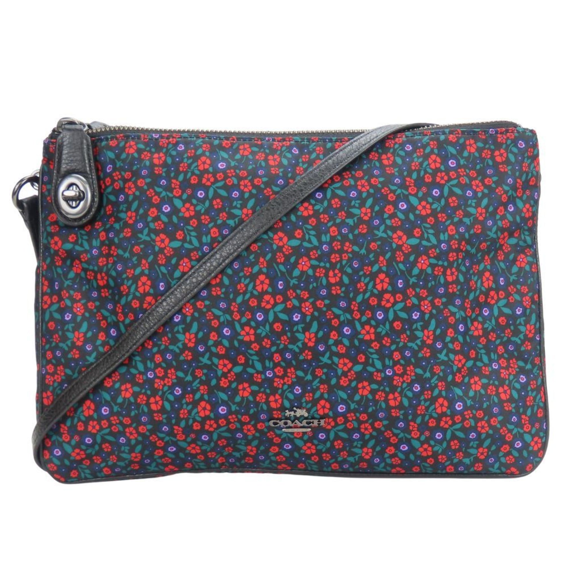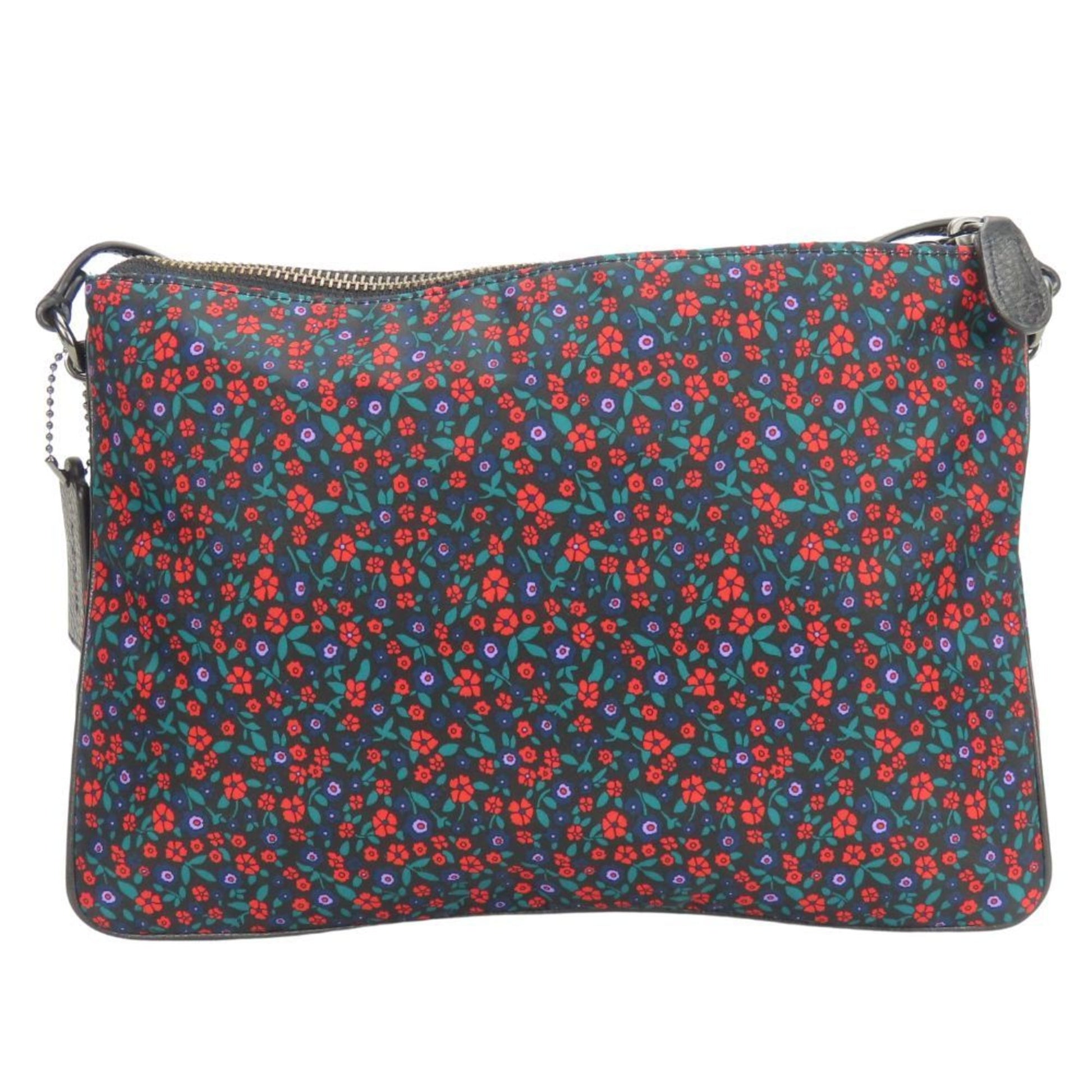 Coach Shoulder Bag F59436 Nylon Leather Black Multicolor Flower