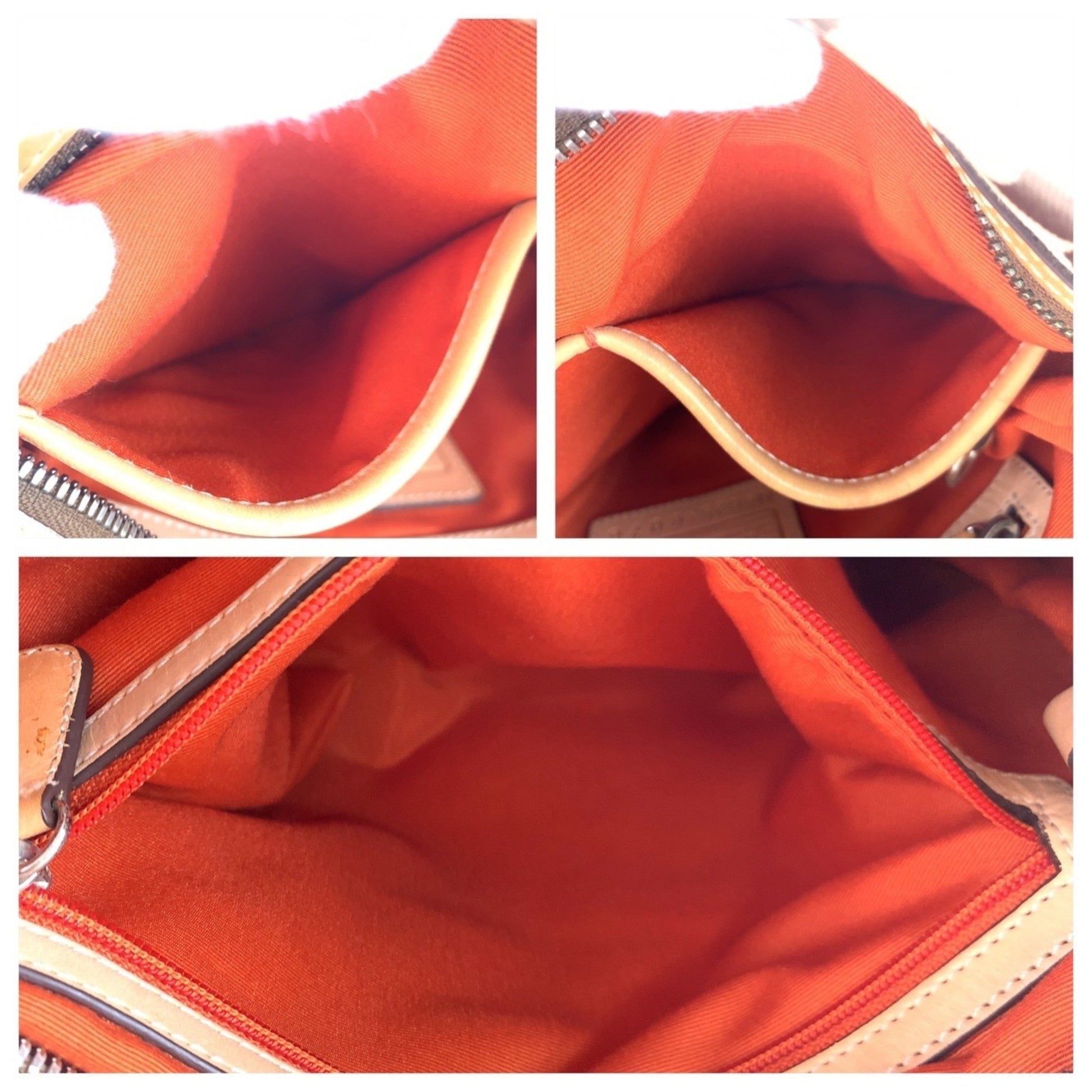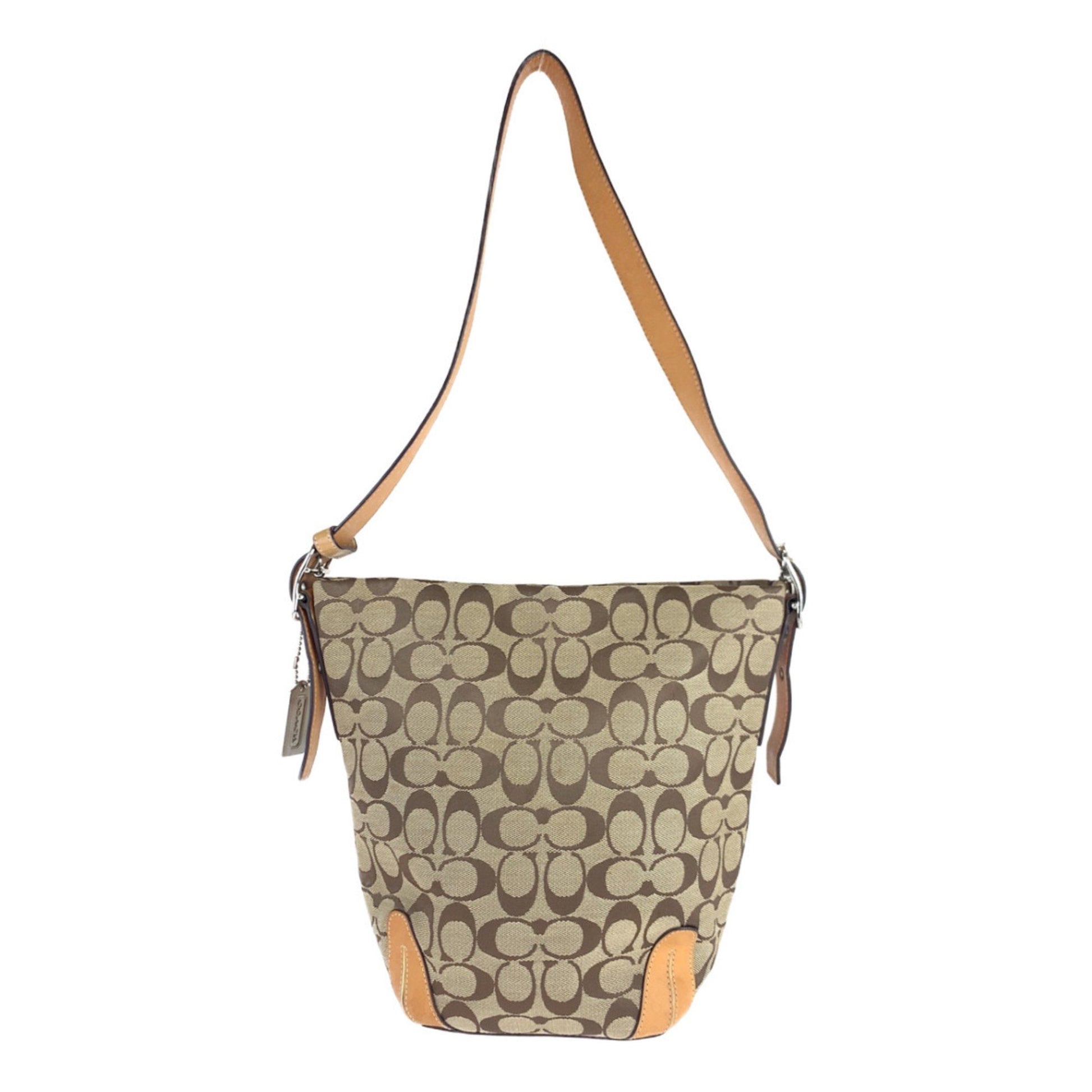 Coach Signature Beige Brown Silver Hardware Canvas Leather Hobo Shoulder Bag