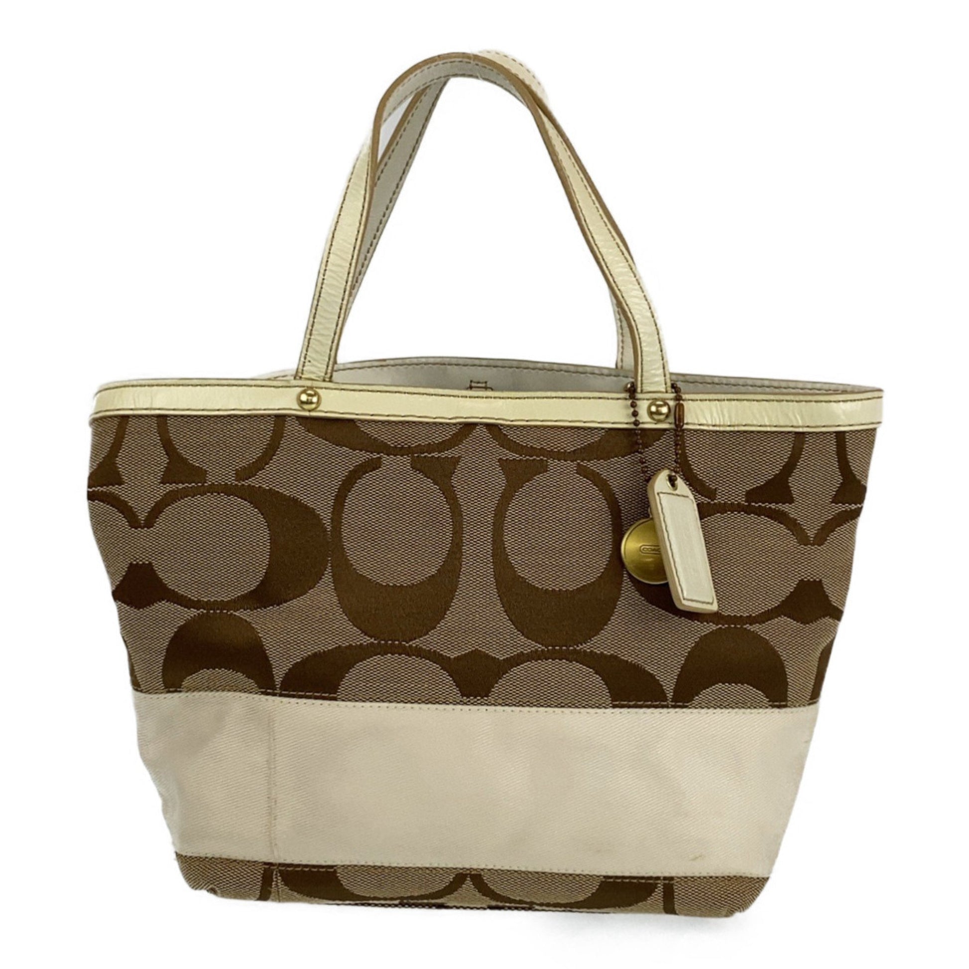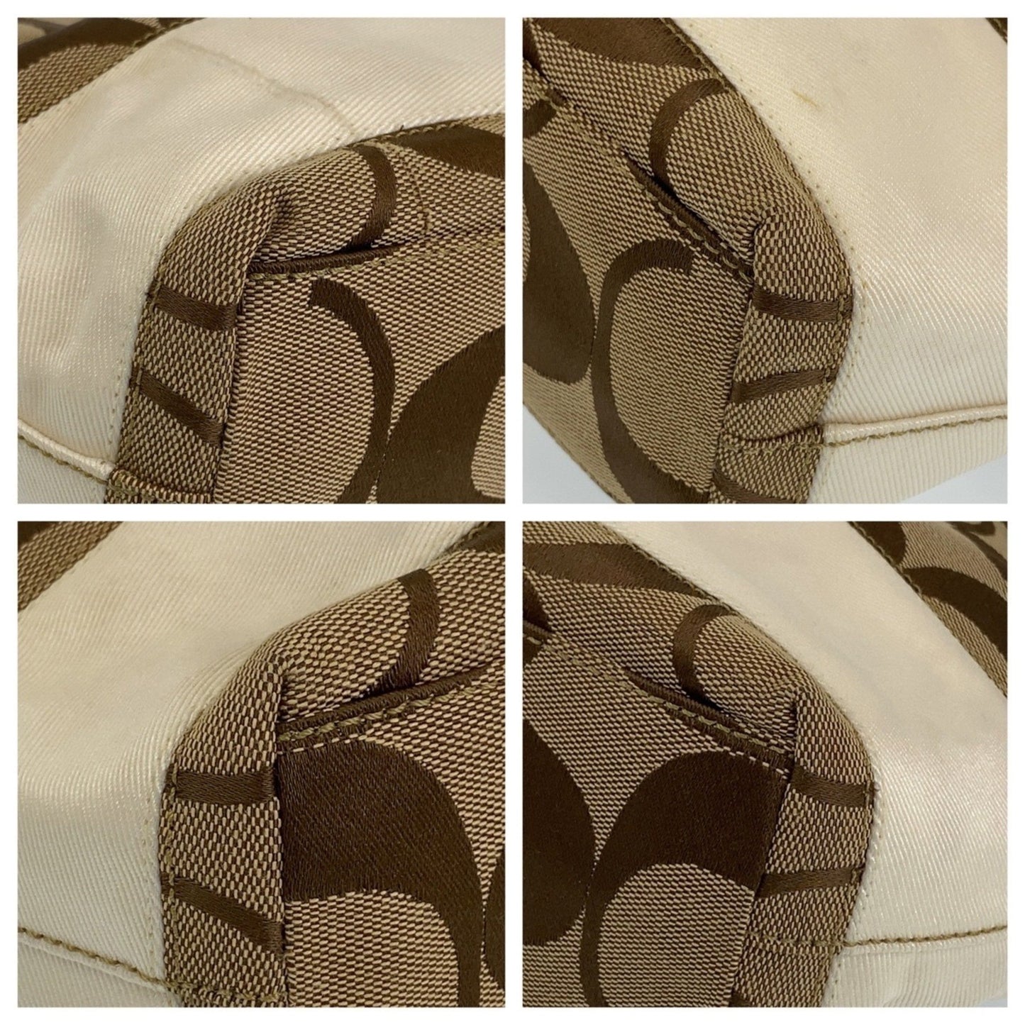 Coach Signature Beige White Gold Hardware Leather Canvas B0767-10123 Tote Bag Handbag