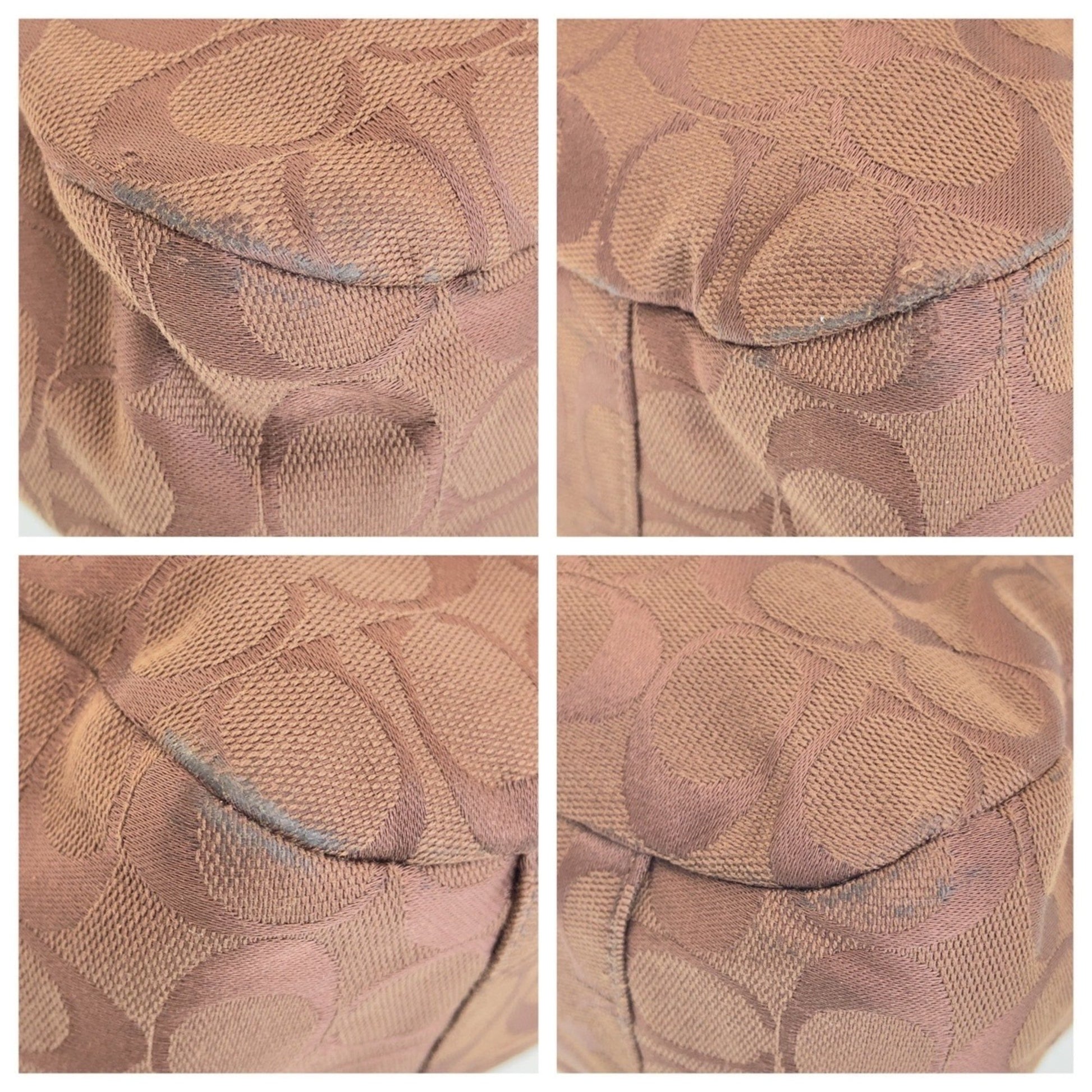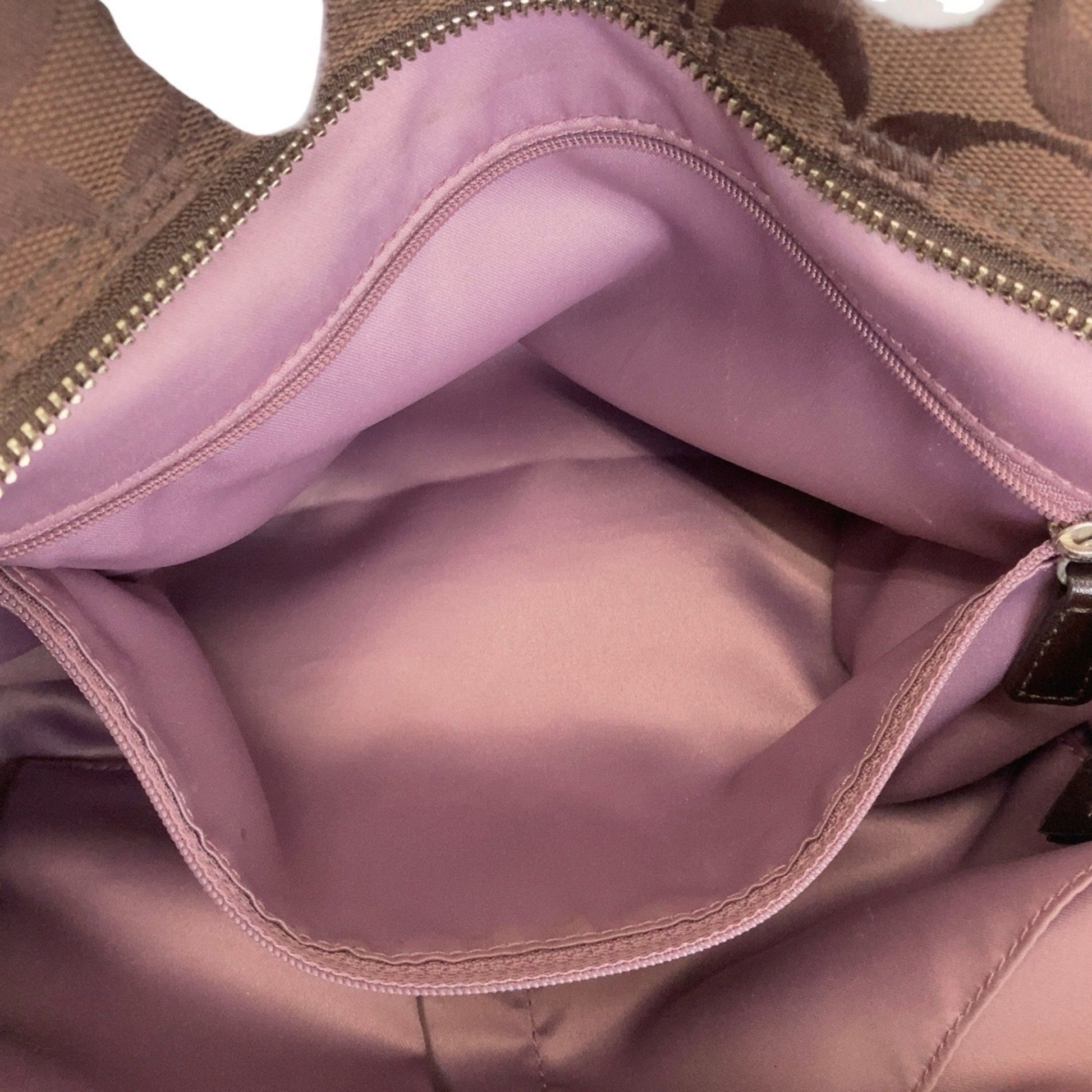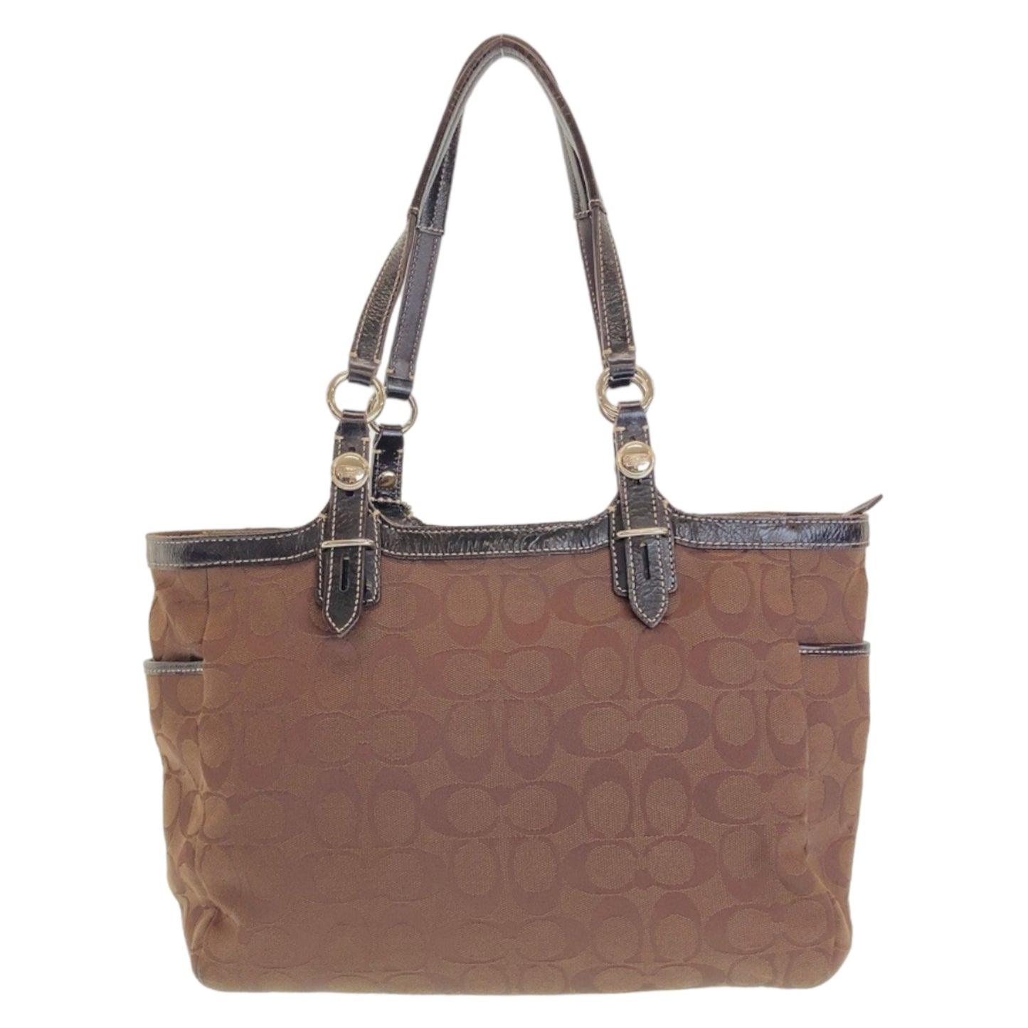 Coach Signature Brown Silver Hardware Canvas Tote Bag Shoulder