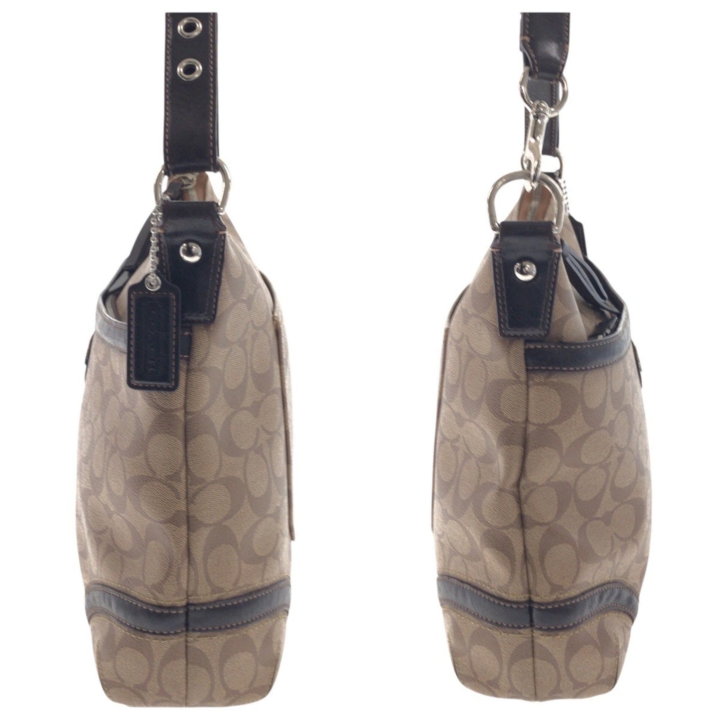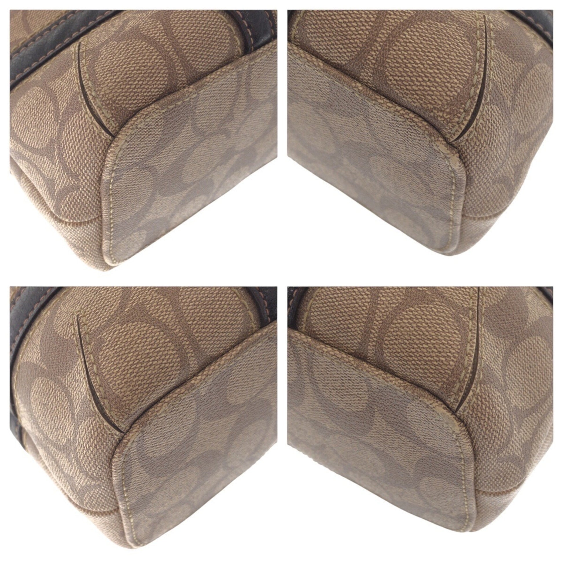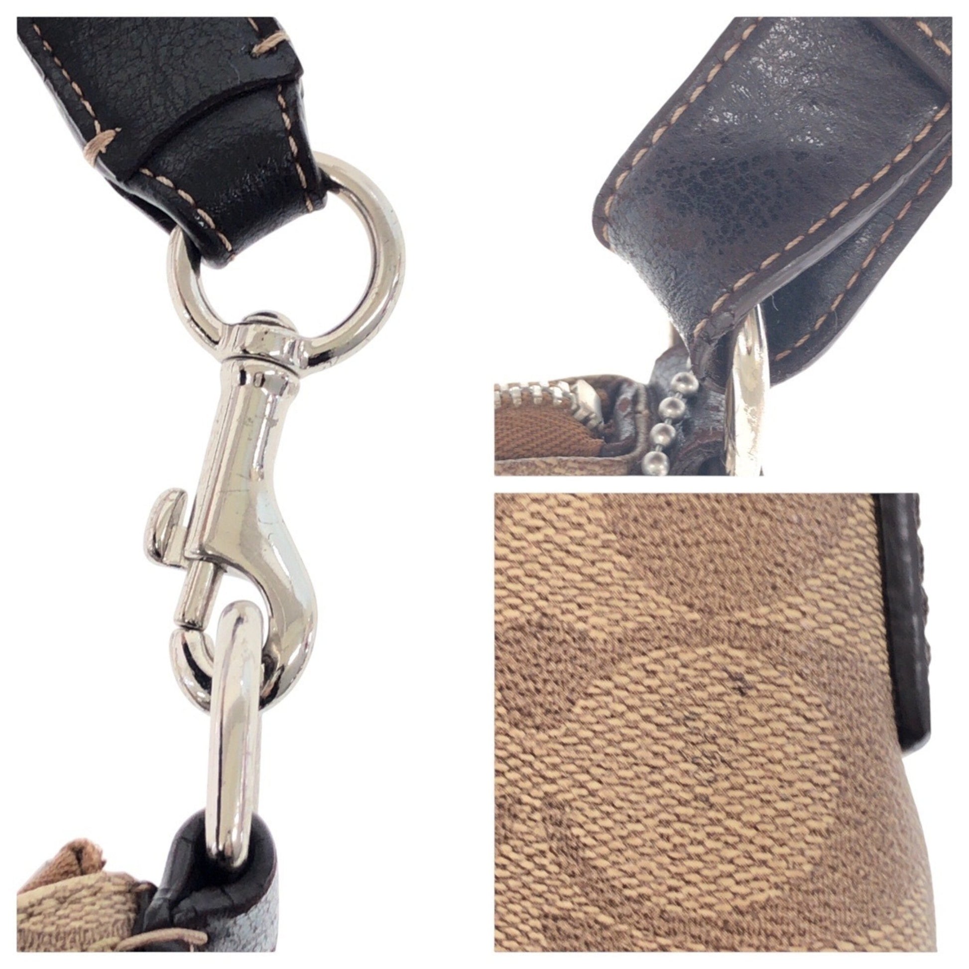 Coach Signature Brown Silver Hardware Leather Shoulder Bag Pochette