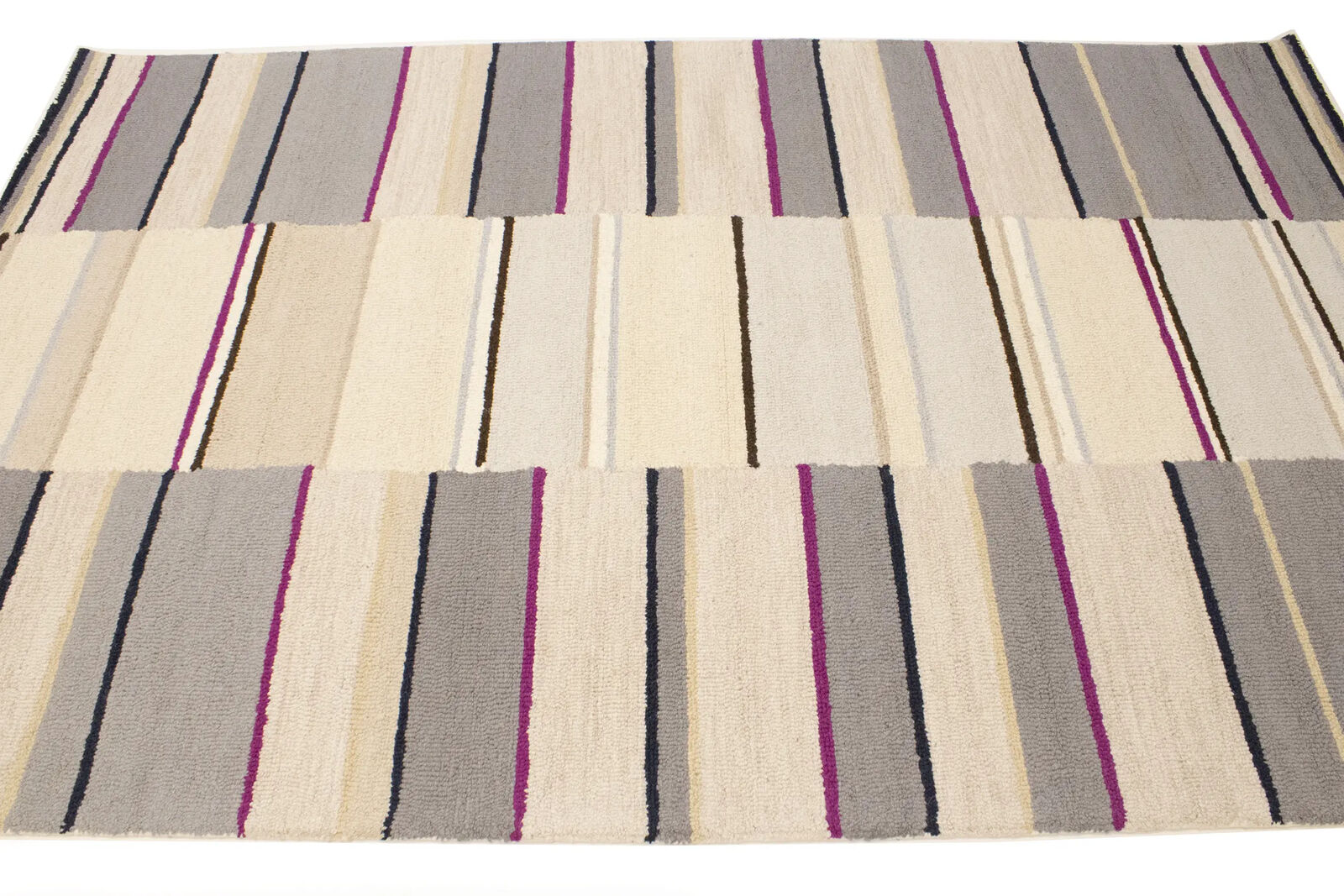 Contemporary Multicolored Stripes 5X8 Hand-Tufted