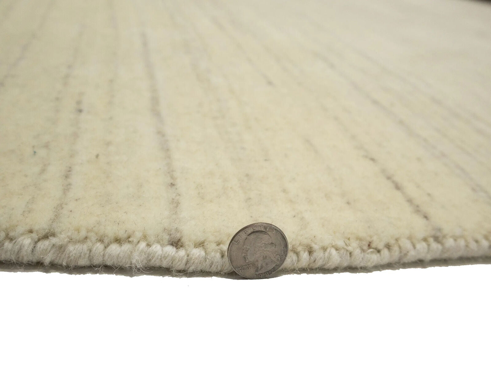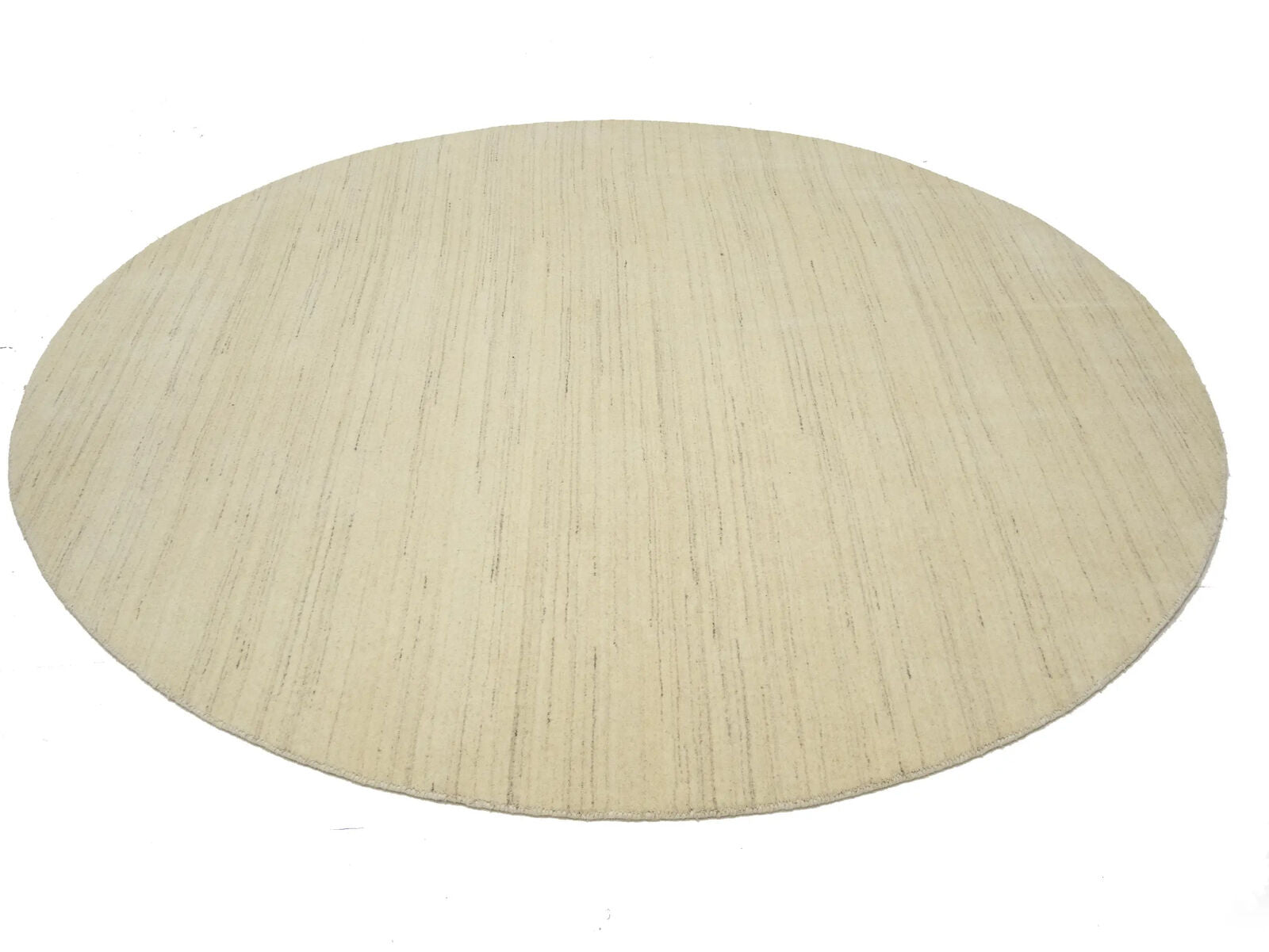 Cream Solid Hand-Loomed 8X8 Gabbeh Wool Rug