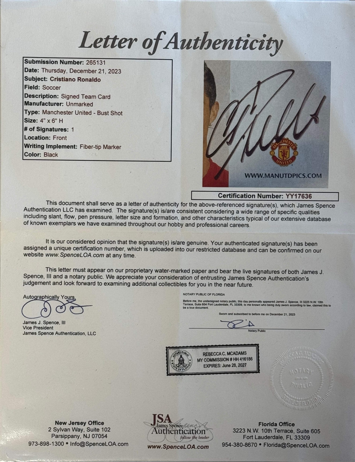 Cristiano Ronaldo Autographed Manchester United Team Card Framed (Jsa)