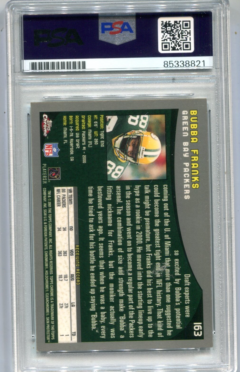 Daniel "Bubba" Franks 2000 Topps Chrome #163 Psa