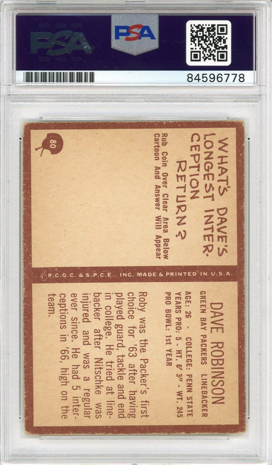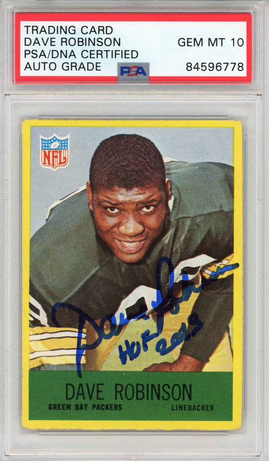 Dave Robinson "Hof 2013" Autographed 1967 Philadelphia Card (Psa Auto Grade 10)