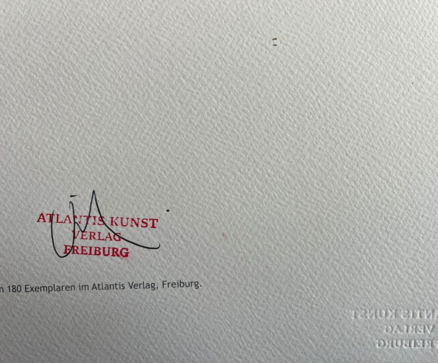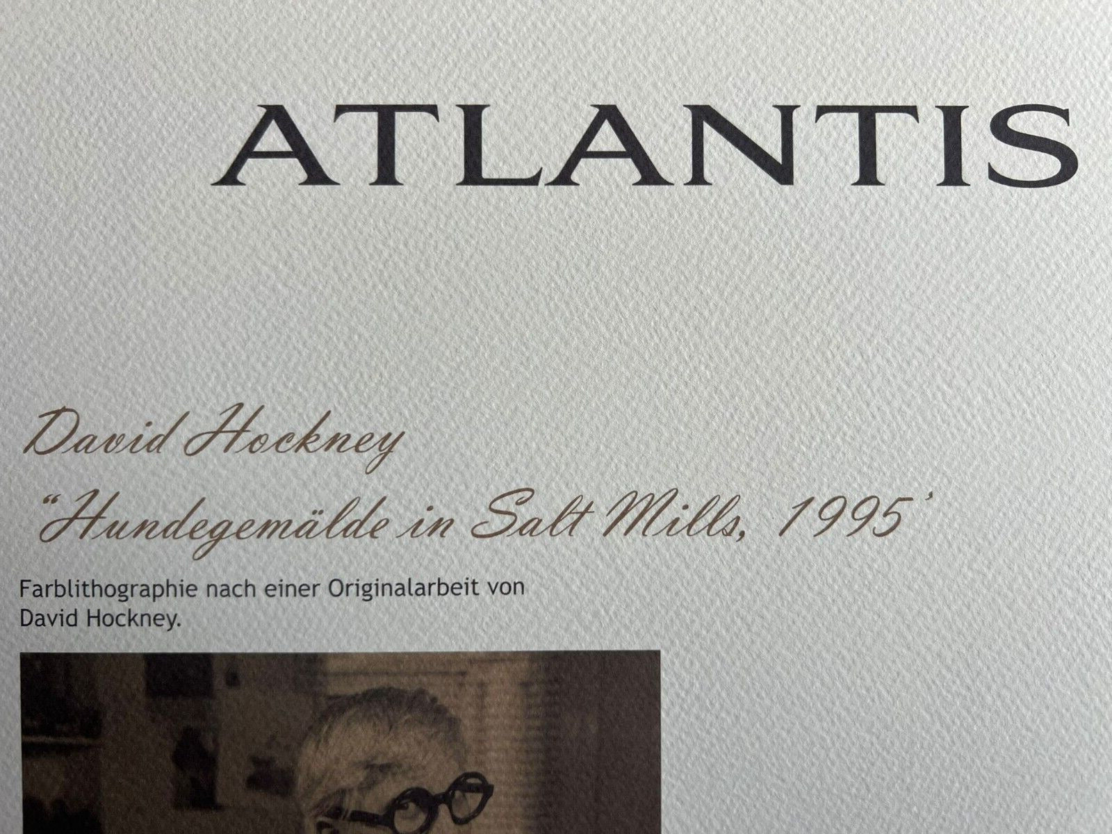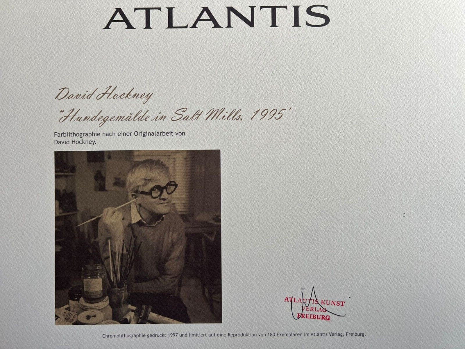 David Hockney - Lithograph COA Signed Numbered By Hand Limited 180ex David Hockney " Mural in Salt Mills, 1995 " Chromolithography printed in 1997 in 180 specimens by Atlantis Verlag, Freiburg 32 x 43 cm Signature David Hockney on the slab COA signed in pen and stamped Dry and authentic stamp of the publishing house The progressive number could be different from the published one. Atlantis Kunst Verlag Freiburg David Hockney "Mural in Salt Mills, 1995" Chromolithography printed in 1997 in 180 specimens by Atlantis Verlag, Freiburg 32 x 43 cm Signature David Hockney on the slabCOA signed in pen and stamped Dry and authentic stamp of the publishing house The progressive number could be different from the published one. Atlantis Kunst Verlag Freiburg