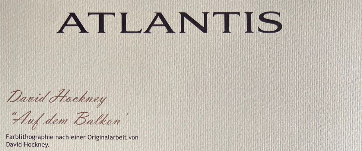 David Hockney Lithograph COA Signed 180 Limited Numbered Edition David Hockney "On the balcony " Chromolithography printed in 1997 in 180 specimens by Atlantis Verlag, Freiburg 32 x 40 cm Signature David Hockney on the slab Dry and authentic stamp of the publishing house The progressive number could be different from the published one. Atlantis Kunst Verlag Freiburg David Hockney "On the balcony" Chromolithography printed in 1997 in 180 specimens by Atlantis Verlag, Freiburg 32 x 40 cm Signature David Hockney on the slab Dry and authentic stamp of the publishing house The progressive number could be different from the published one. Atlantis Kunst Verlag Freiburg