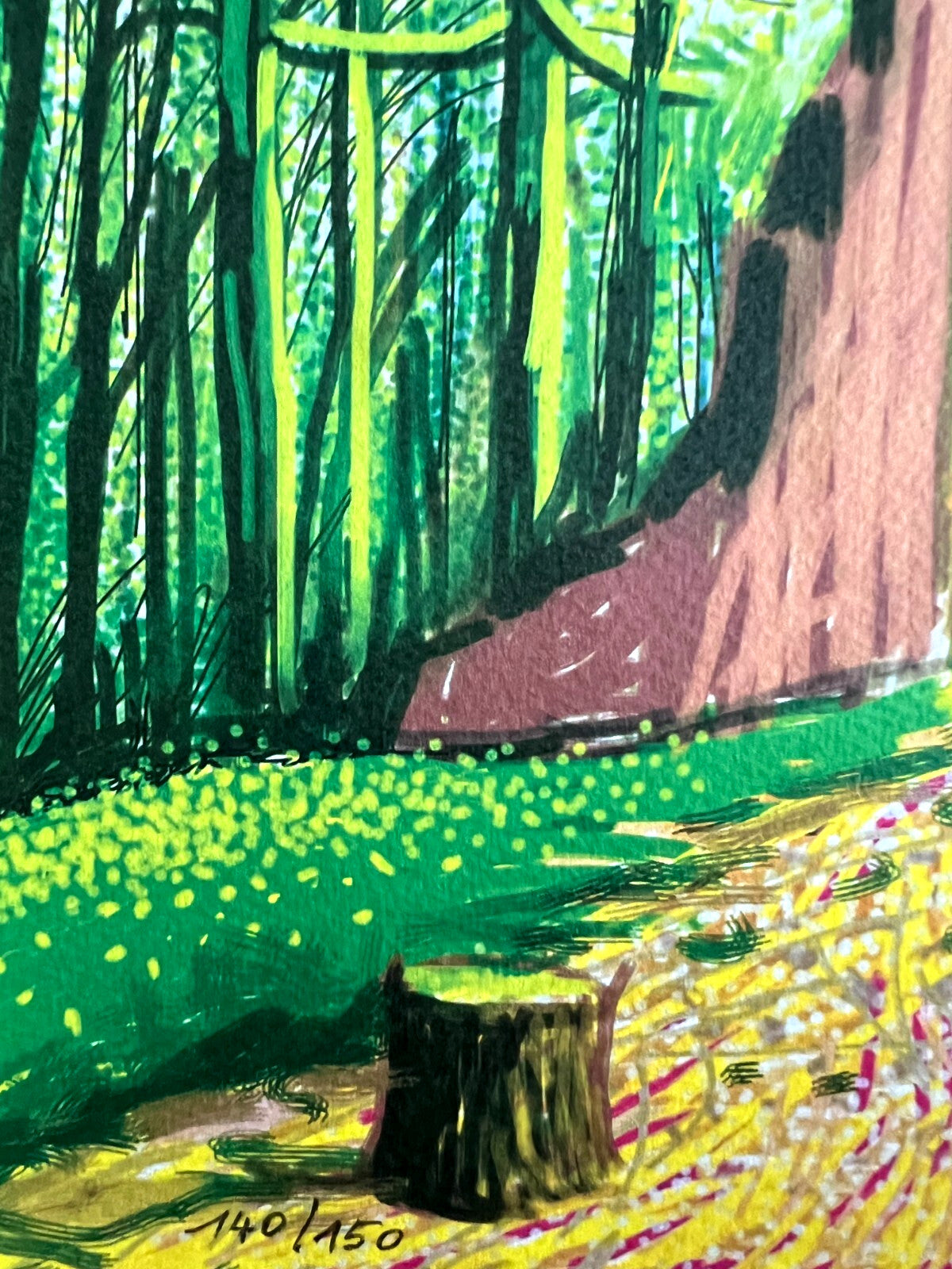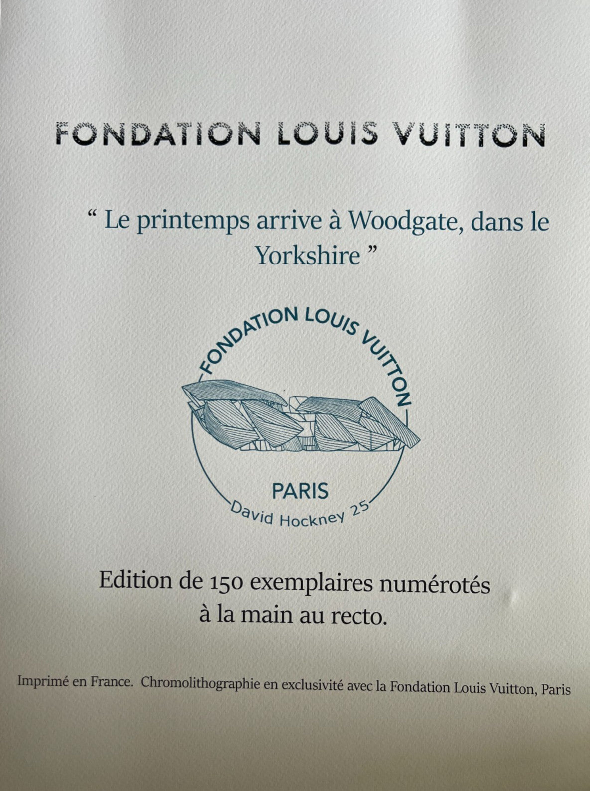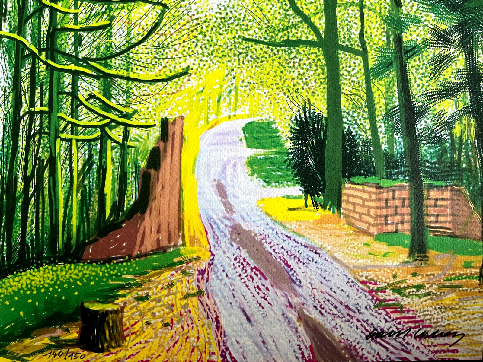 David Hockney - Lithograph COA Signed op Numbered A Hand David Hockney "Spring arrives in Woodgate, Yorkshire " Chromolithography printed in 150 specimens 32 x 43 cm Signature David Hockney on the slab The progressive number could be different from the published one. Fondation Louis Vuitton David Hockney "Spring arrives in Woodgate, Yorkshire" Chromolithography printed in 150 specimens 32 x 43 cm Signature David Hockney on the slab The progressive number could be different from the published one. Fondation Louis Vuitton