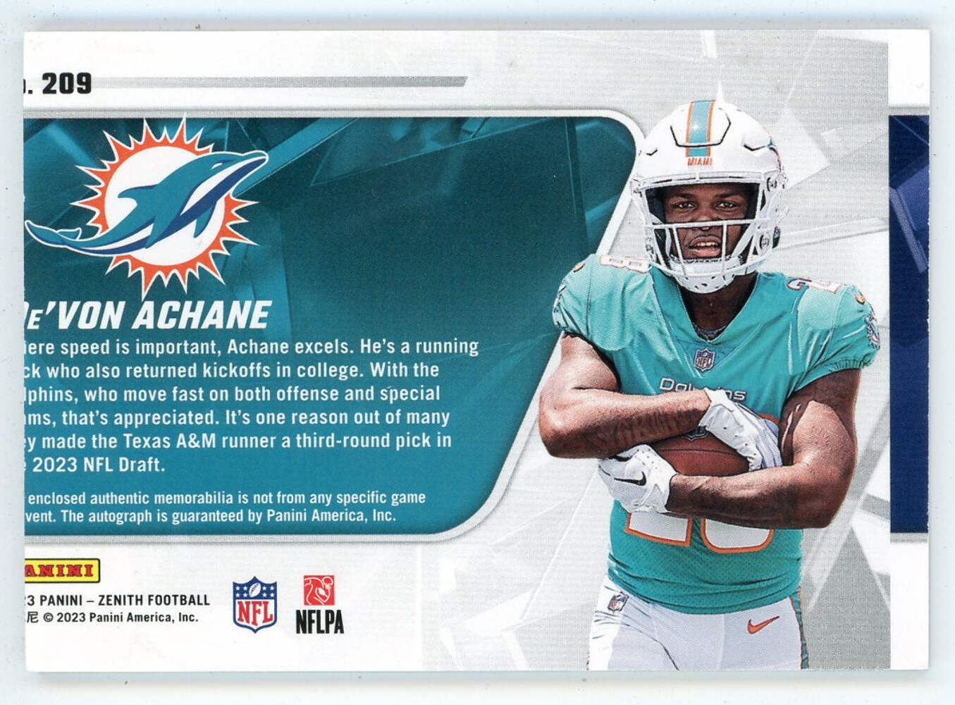 De'Von Achane Autographed 2023 Panini Zenith Patch Relic #209