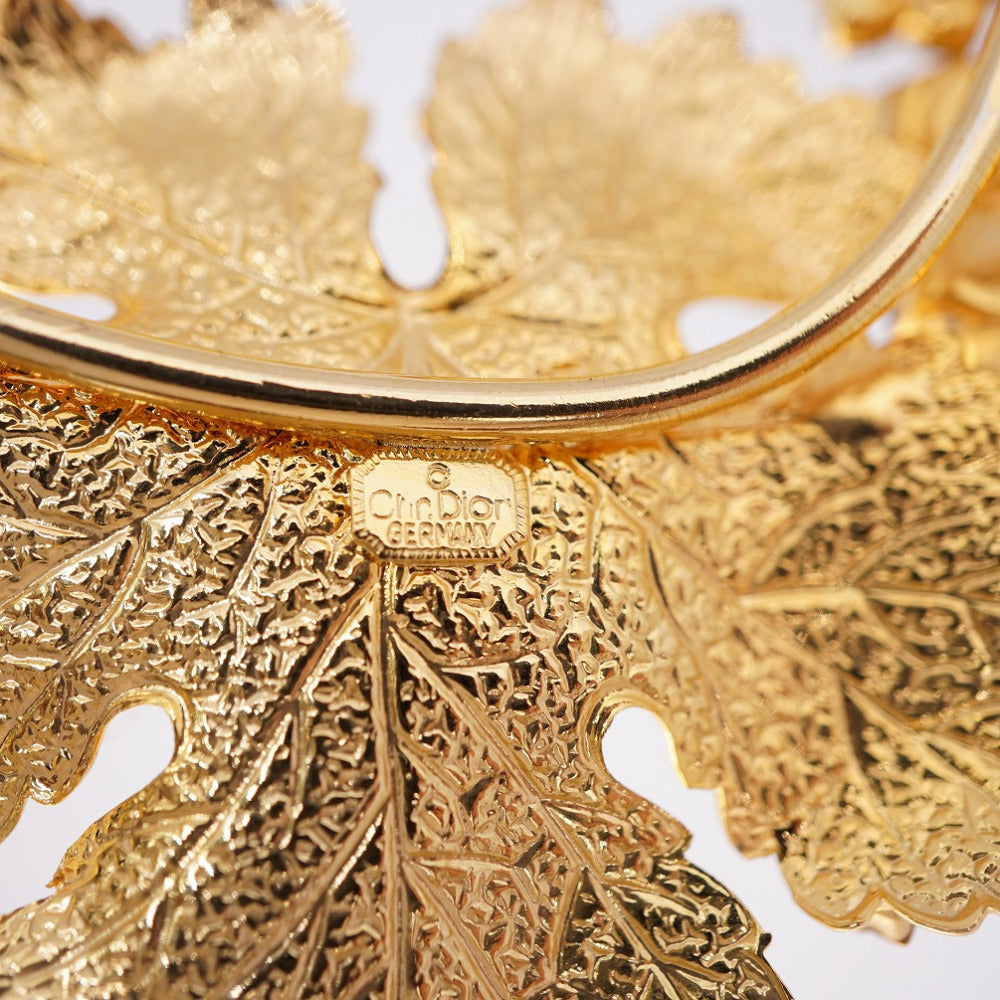 Dior Necklace Metal, Rhinestone Gold Vintage Rhinestone Necklace Leaf Motif Women