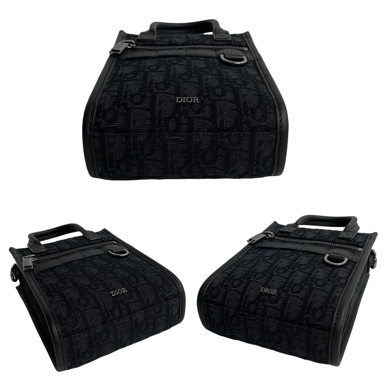 Dior Shoulder Bag Canvas, Leather Black Oblique Pattern North South Women(Unisex)