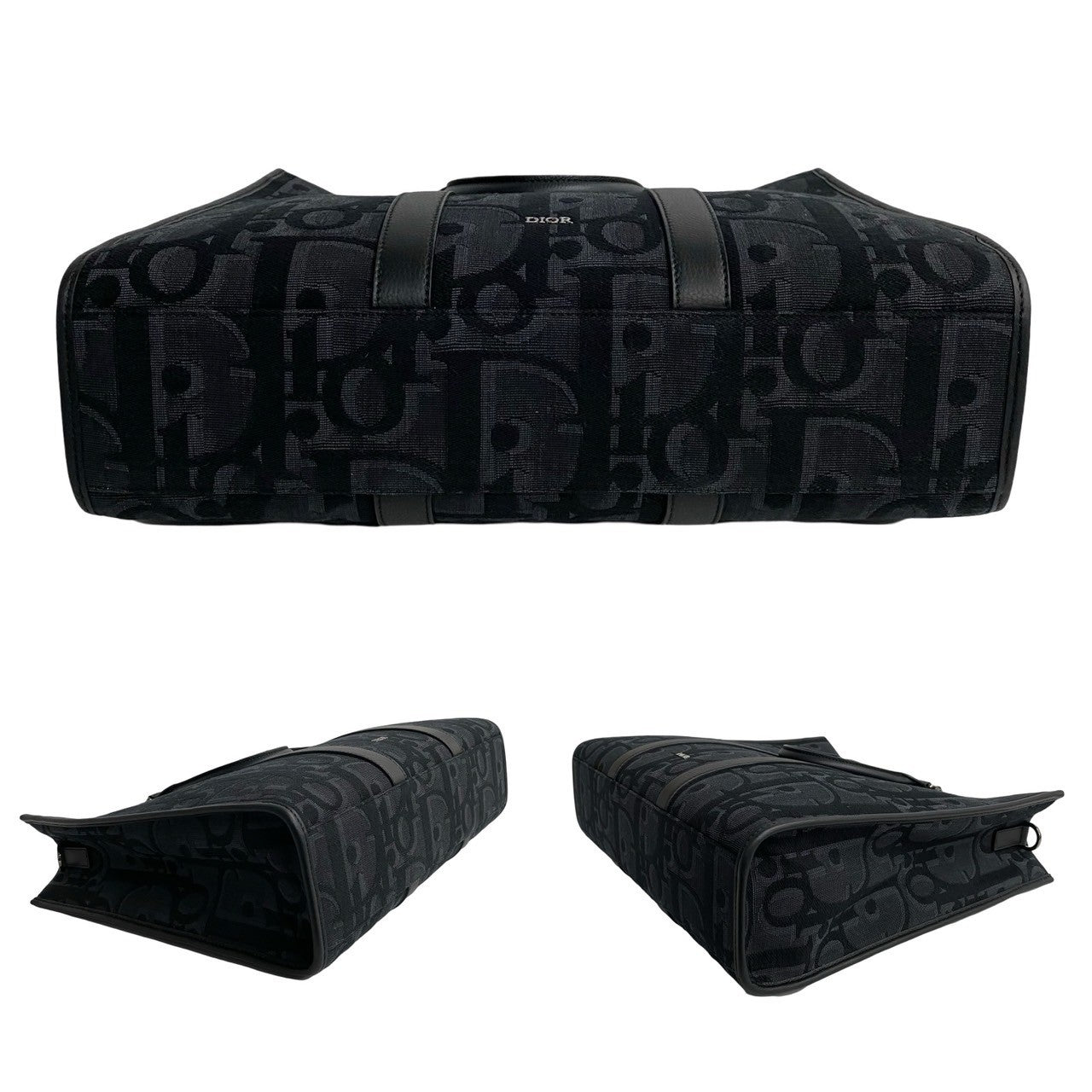 Dior Tote Bag Leather, Canvas Black Trotter Pattern East West Mens
