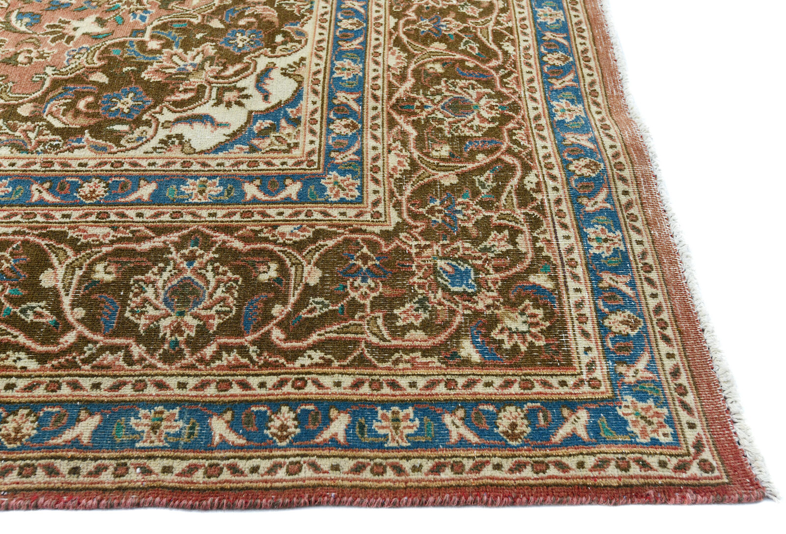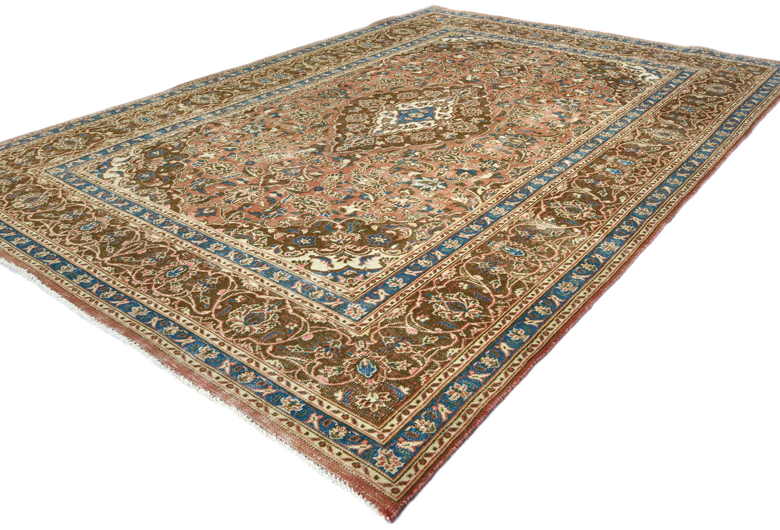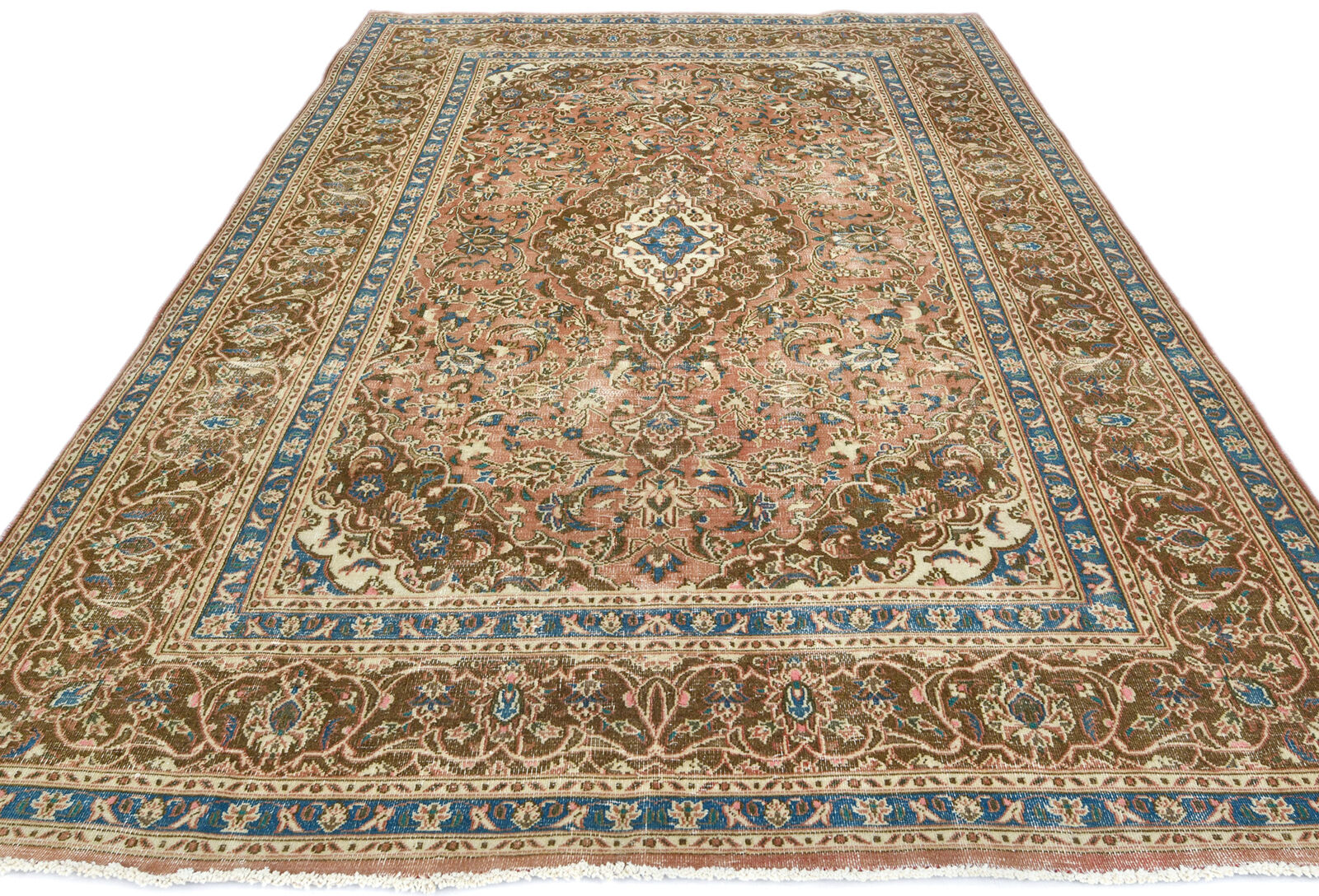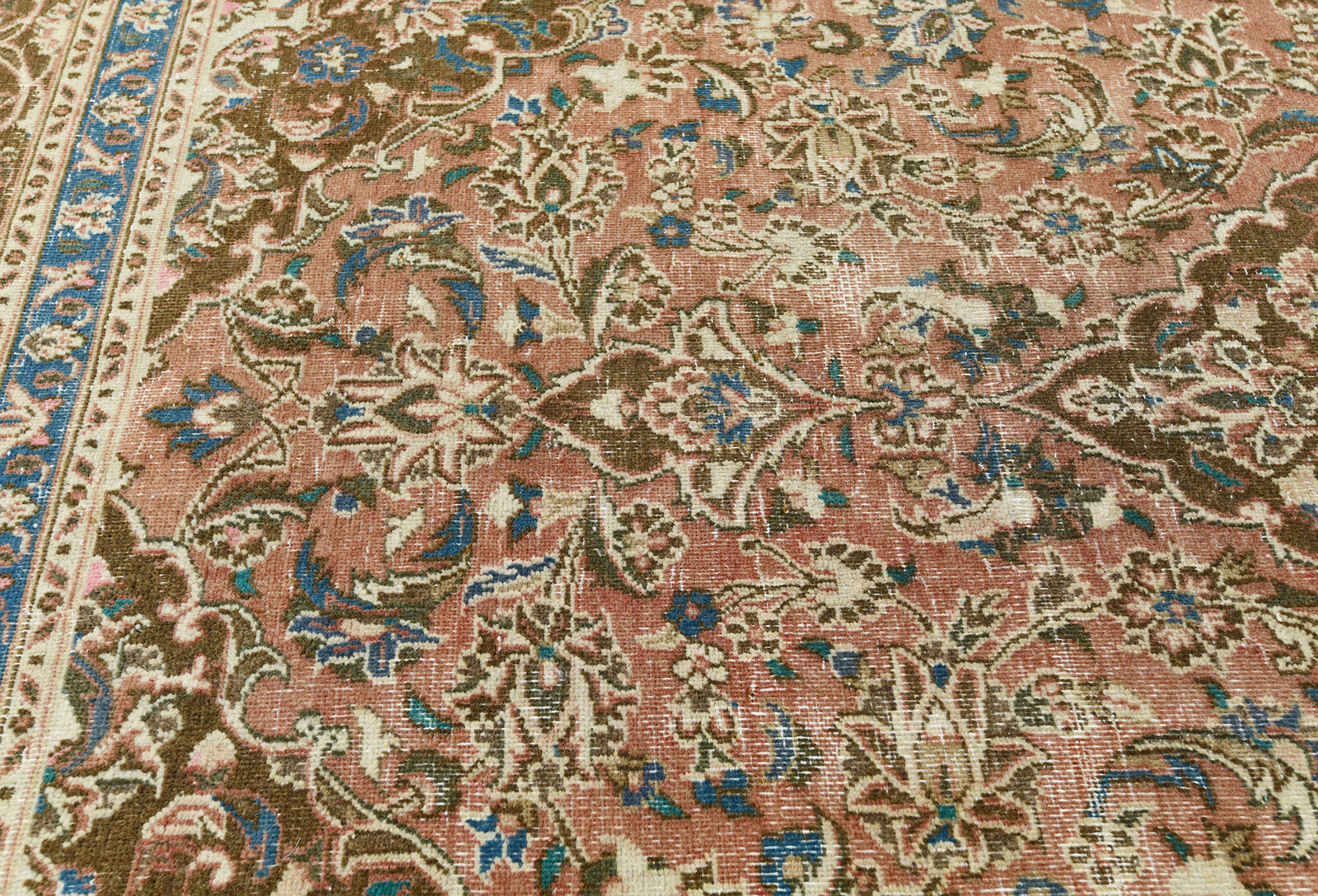Distressed Vintage Wool Oriental Rug Muted Brown