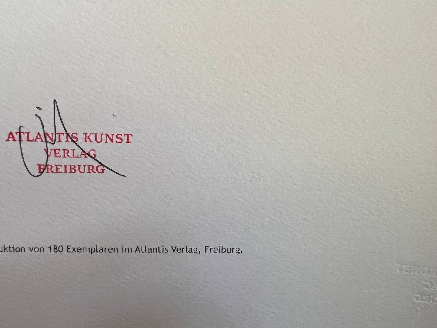 Donald Judd Lithograph COA Signed Numbered Stamped (In 180 Ex) Donald Judd " without title " Chromolithography printed in 1987 in 180 specimens by Atlantis Verlag, Freiburg 32 x 44 cm Signature Donald Judd on the COA slab signed in Penna and stamped Dry and authentic stamp of the publishing house Atlantis Kunst Verlag Freiburg Donald Judd "without title" Chromolithography printed in 1987 in 180 specimens by Atlantis Verlag, Freiburg 32 x 44 cm Signature Donald Judd on the COA slab signed in Penna and stamped Dry and authentic stamp of the publishing house Atlantis Kunst Verlag Freiburg Related keywords signed lithograph donald judd lithograph signed numbered lithograph signed judd signed signed print signed lithograph etching signed numbered etching signed lithograph signed limited edition signed art lithograph signed numbered framed donald judd furniture signed art prints signed and numbered donald judd print lithograph print signed donald judd signed donald judd spaces lithograph signed lithograph signed matisse lithograph signed signed lithograph print donald judd lithograph signed lithograph signed numbered lithograph signed lithograph Provided by