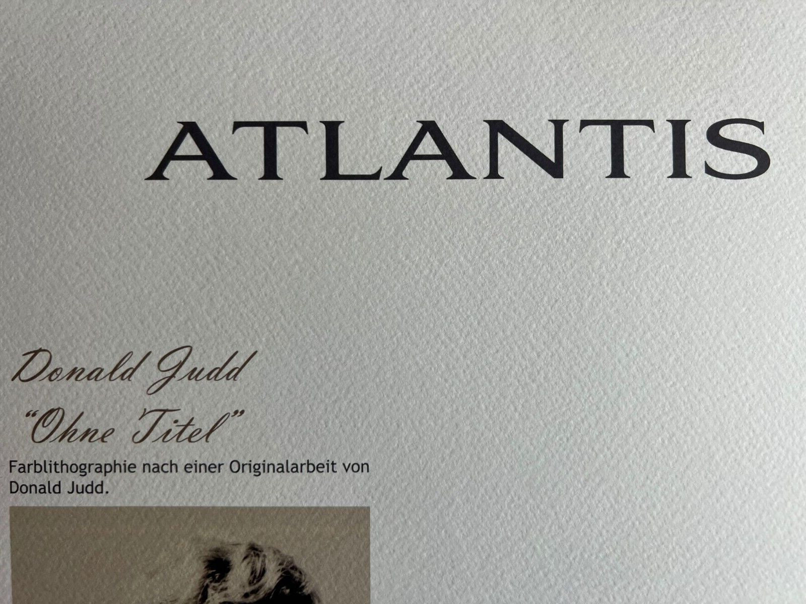 Donald Judd Lithograph COA Signed Op Numbered Stamped 180 Exe Donald Judd " without title " Chromolithography printed in 1987 in 180 specimens by Atlantis Verlag, Freiburg 32 x 42 cm Signature Donald Judd on the COA slab signed in Penna and stamped Dry and authentic stamp of the publishing house Atlantis Kunst Verlag Freiburg Donald Judd "without title" Chromolithography printed in 1987 in 180 specimens by Atlantis Verlag, Freiburg 32 x 42 cm Signature Donald Judd......