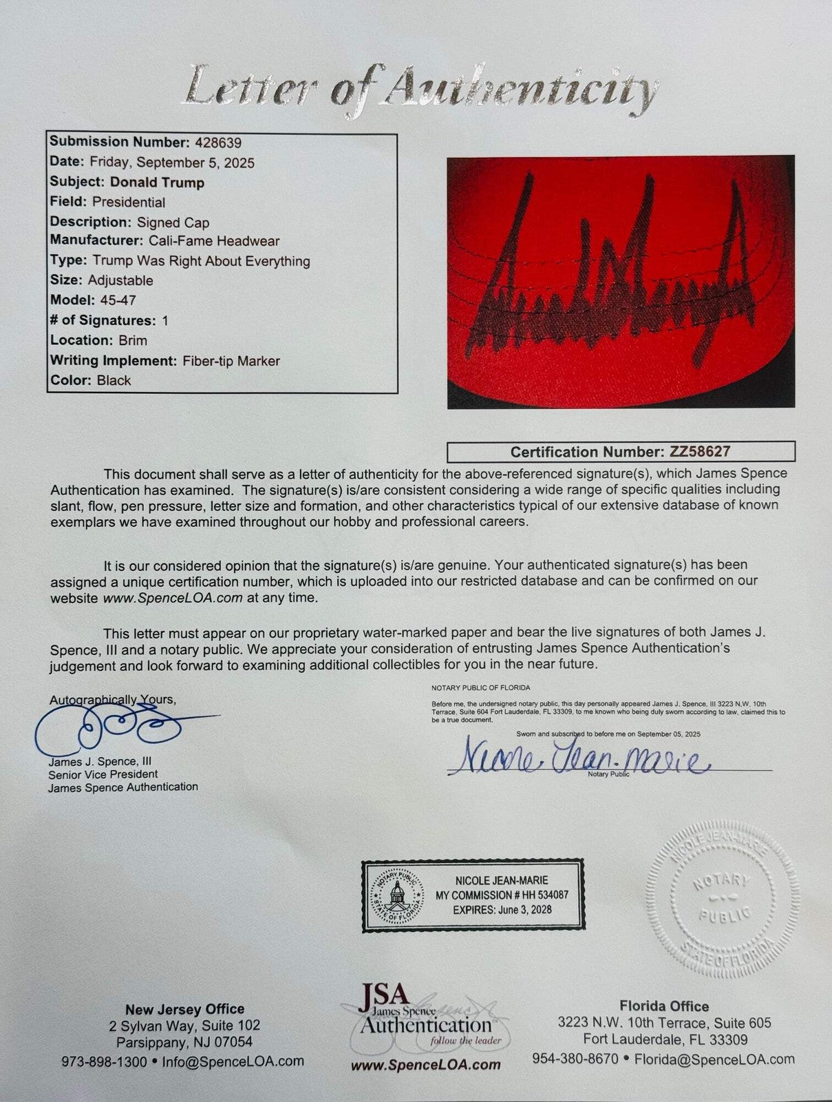 Donald Trump Autographed Red Maga Hat Full Signature (Jsa)