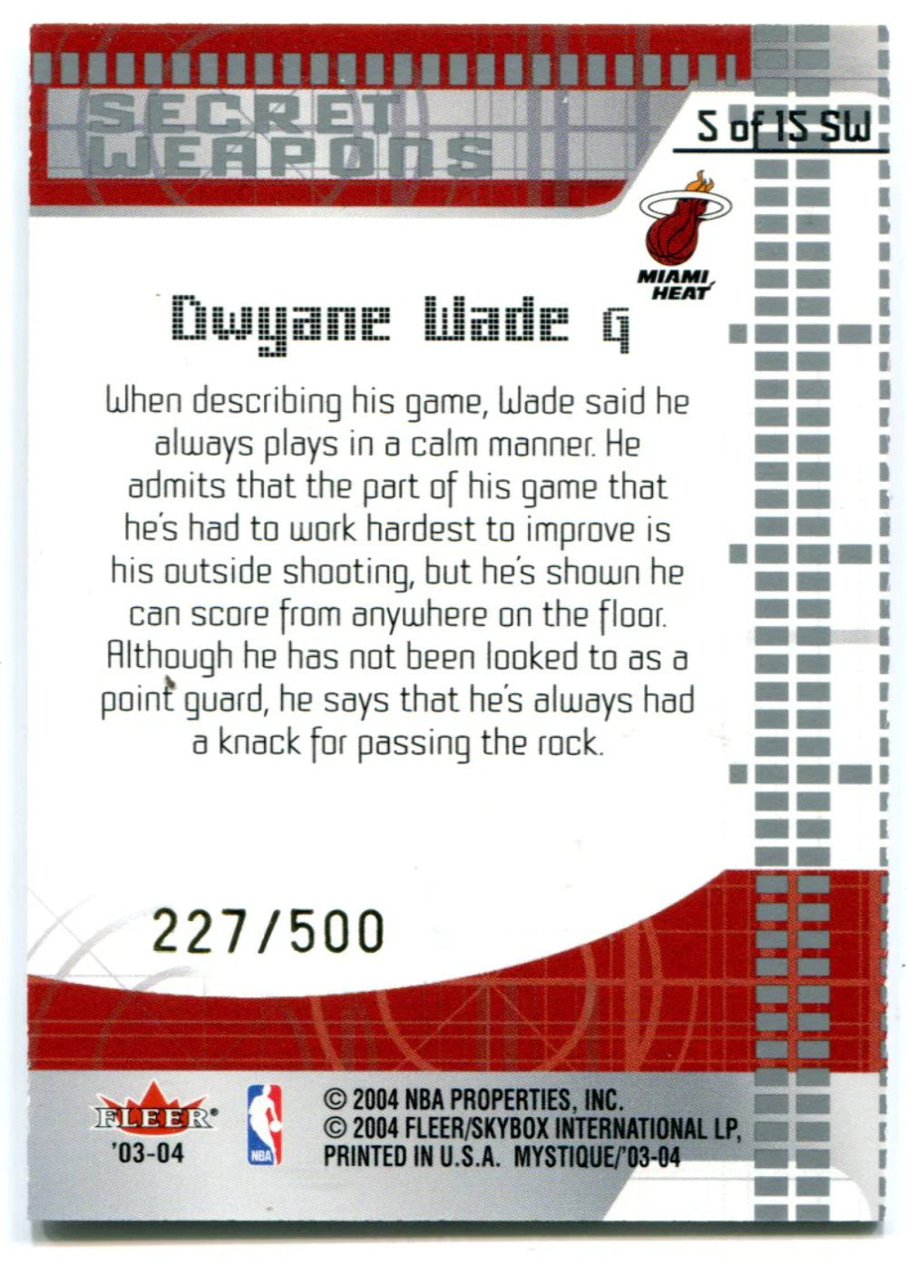 Dwyane Wade 2003 Fleer Mystique #5 Card 227/500