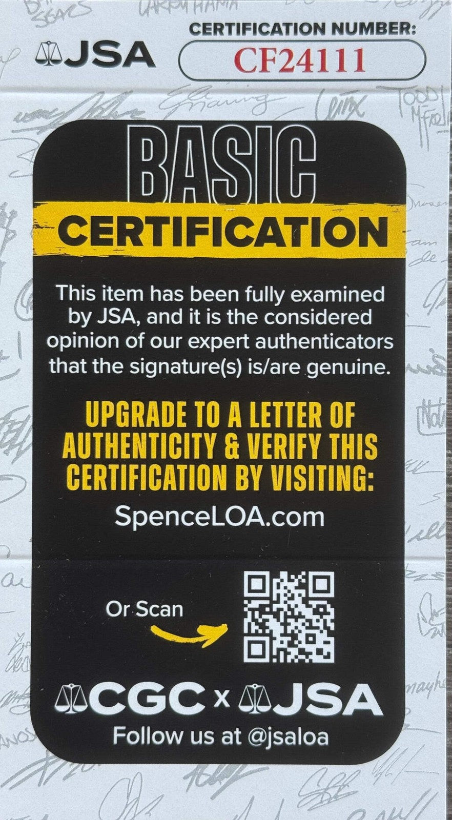 Brand: James Spence Authentication (JSA)