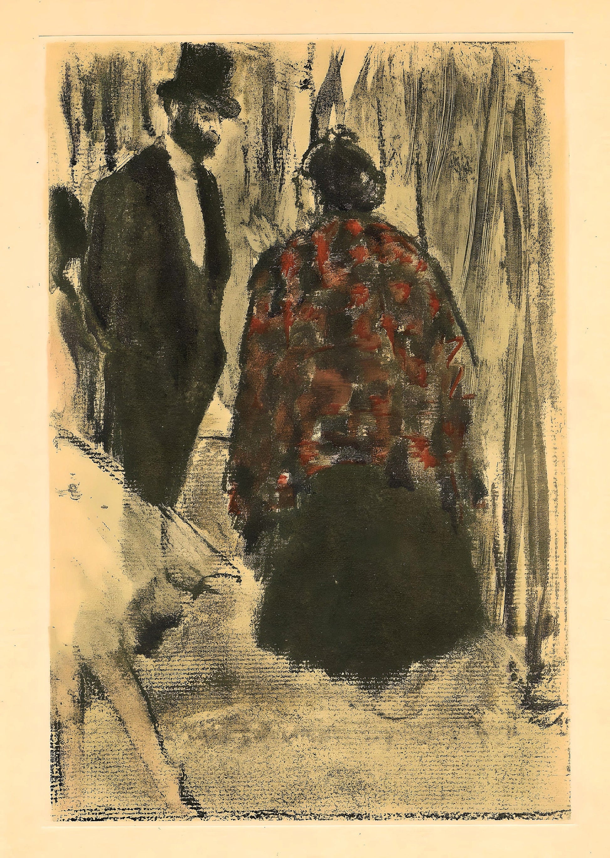 Engraving on vlin du Marais paper. Unsigned and unnumbered, as issued. Paper Size: 12.25 x 9.125 inches. Excellent condition. Notes: From the volume, E. Degas Monotypes, 1948. Published by Quatre Chemins-Editart, Paris; printed by Les Ateliers G. Bouan, and Dreux-Barry, Paris, February 1948. Excepted from the volume (translated from French), It was taken from this work M numbered examples. The fac-simils were executed by the art printing G. Bouan and colours by les ate......