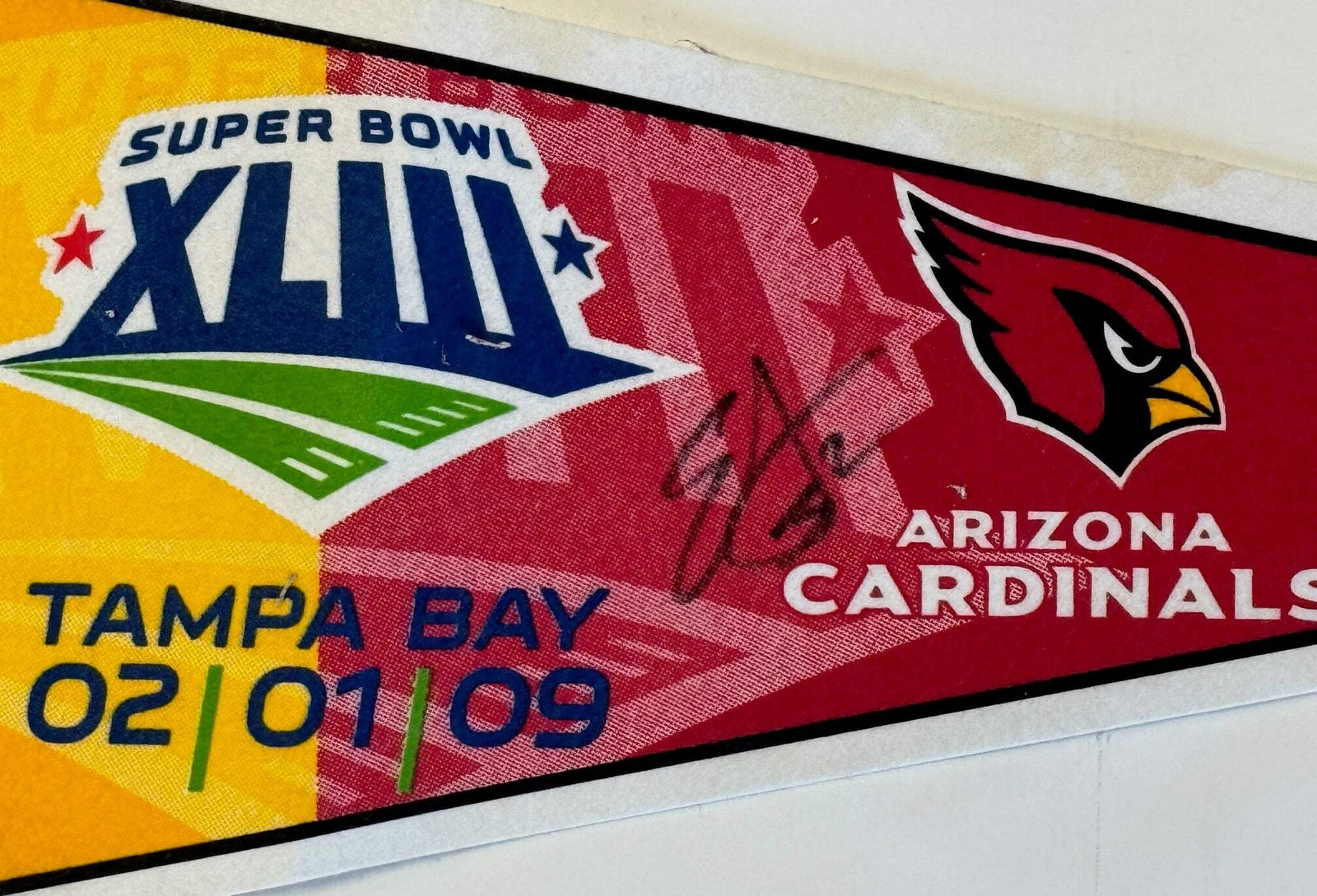 Edgerrin James Autographed Super Bowl Xliii Cardinals Vs Steelers Pennant