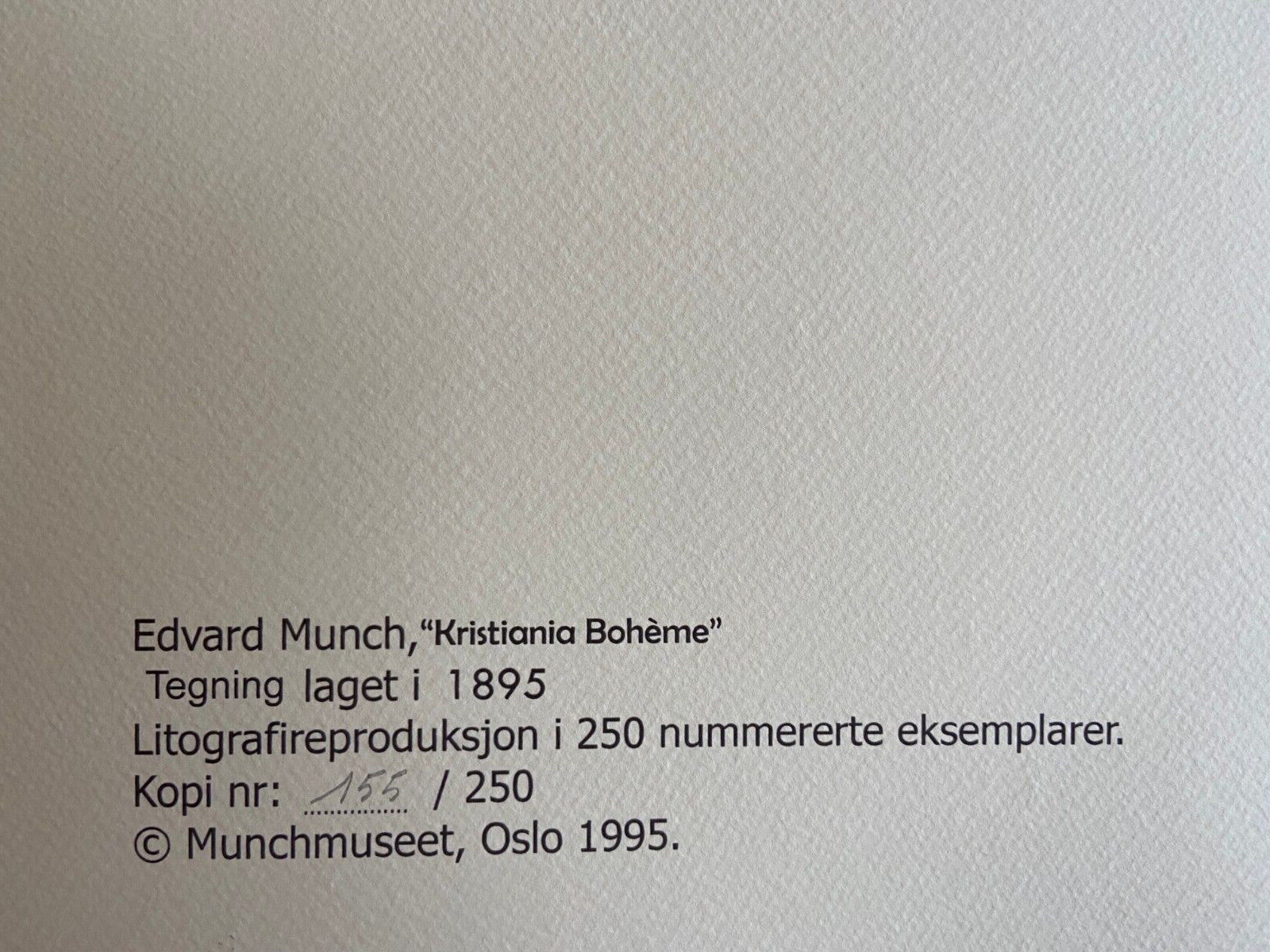 Edvard Munch Lithograph COA Numbered By Hand Signed Museum - Egon Schiele Edvard Munch '' Kristania bohme '' It operates by an Lithograph of the master of 1895. Signature Edvard Munch on the slab. The graphic work measures 31 x 45 cm The edition is 250 eg. hand numbered. Printed in 1995. Munch Museum , Oslo. Like Edgar Degas, Egon Schiele, Piet Mondrian, Georges Braque, Raoul Dufy, Ren Magritte, Edvard Munch, Gustav Klimt, Paul Cezanne, Renoir, Rembrandt, Picasso, A......