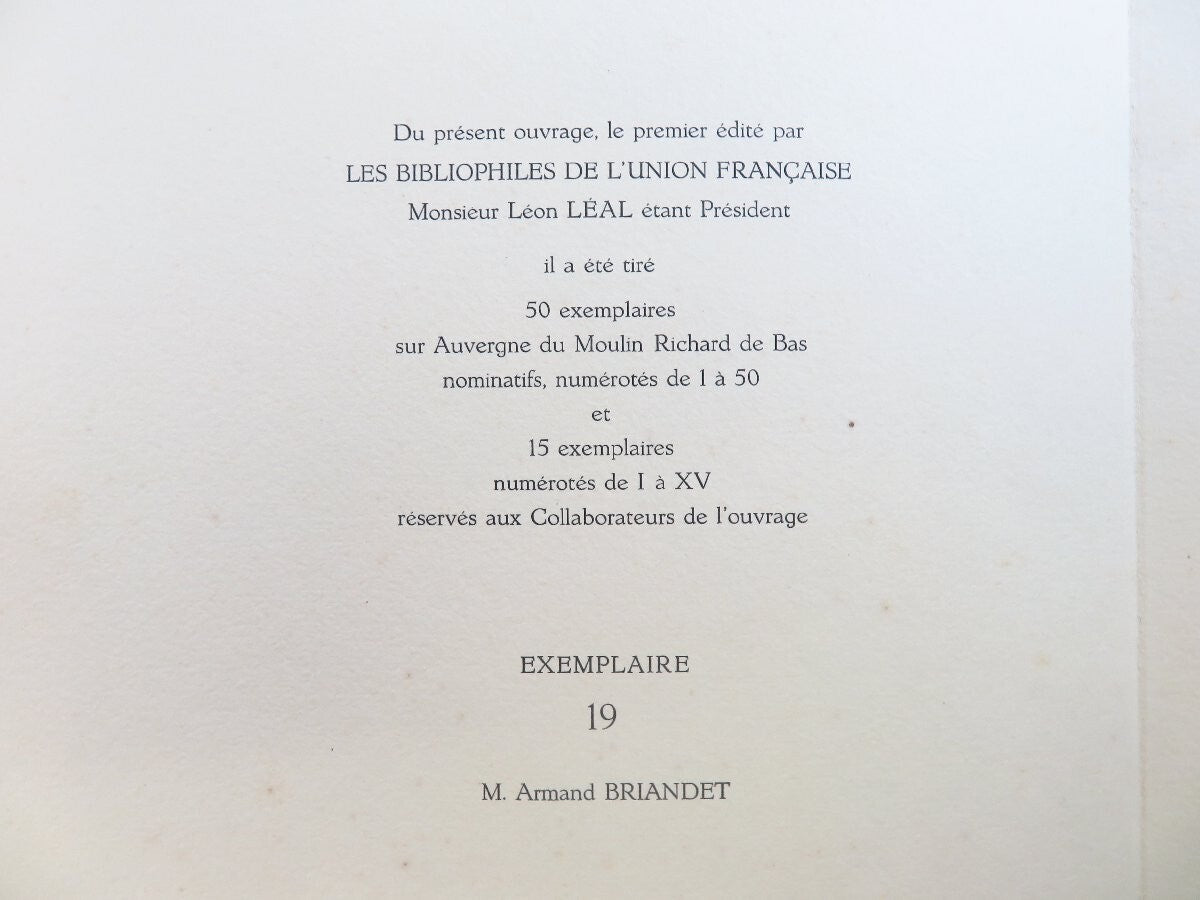 Publisher: Les Bibliophiles de l"Union Francaise Paris