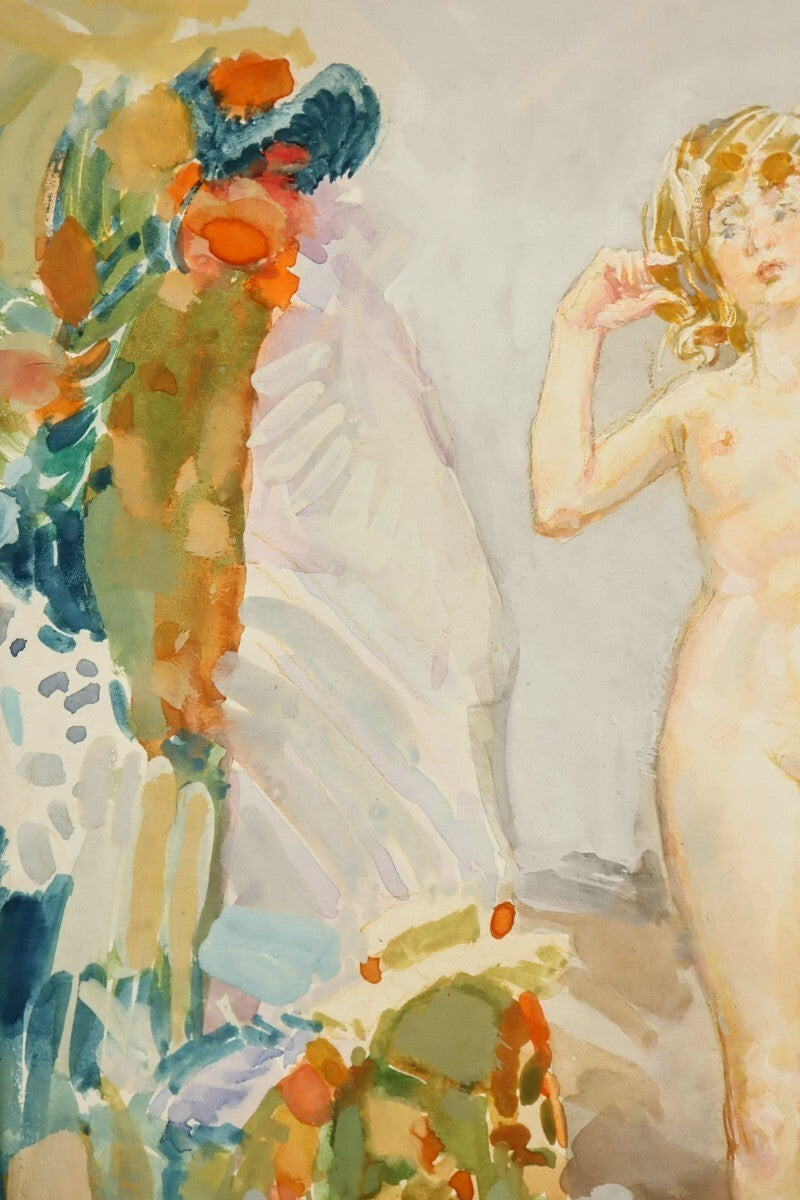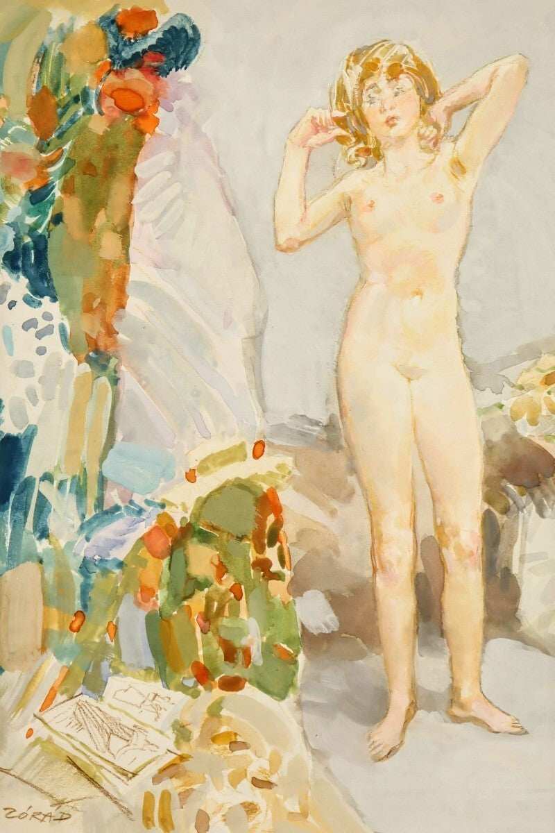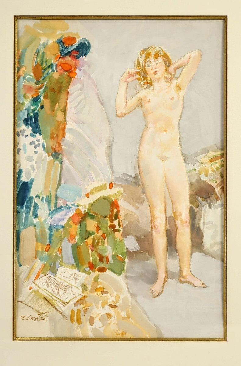 Erno Zorad (Hungary) Signed Original Watercolor On Paper Nude Painting Framed