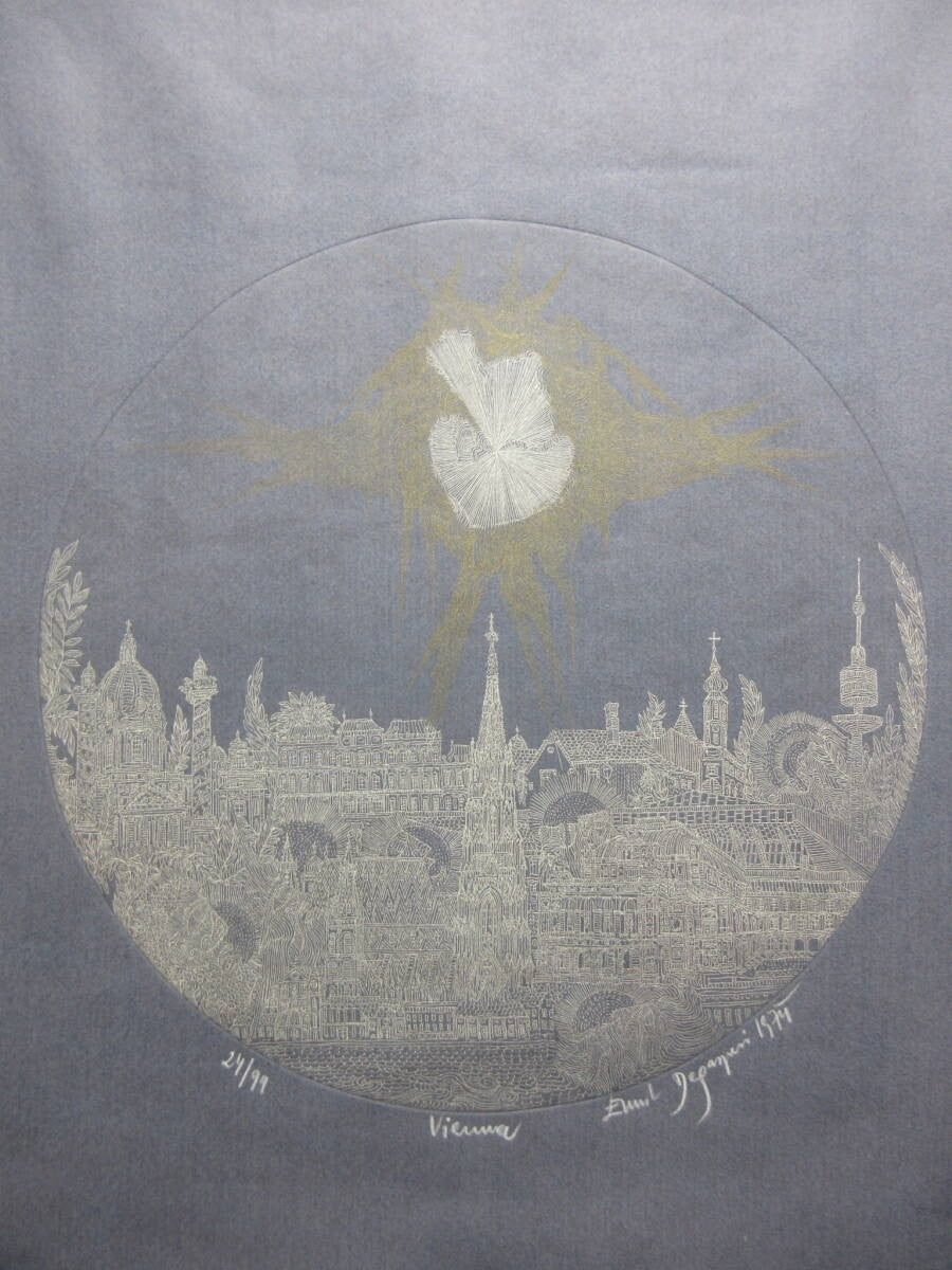 Ernst Degasperi Vienna 1974 Signed Etching 24/99 Austrian Architecture Art Frame