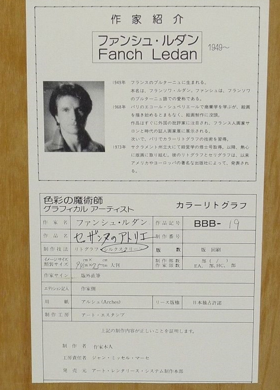 Fanch Ledan (France) - Czanne'S Studio Original Serigraph Print Signed Framed