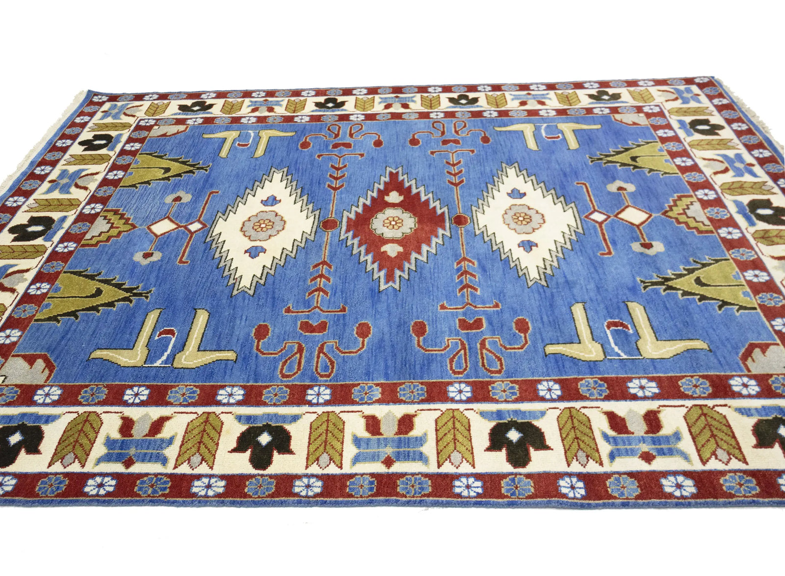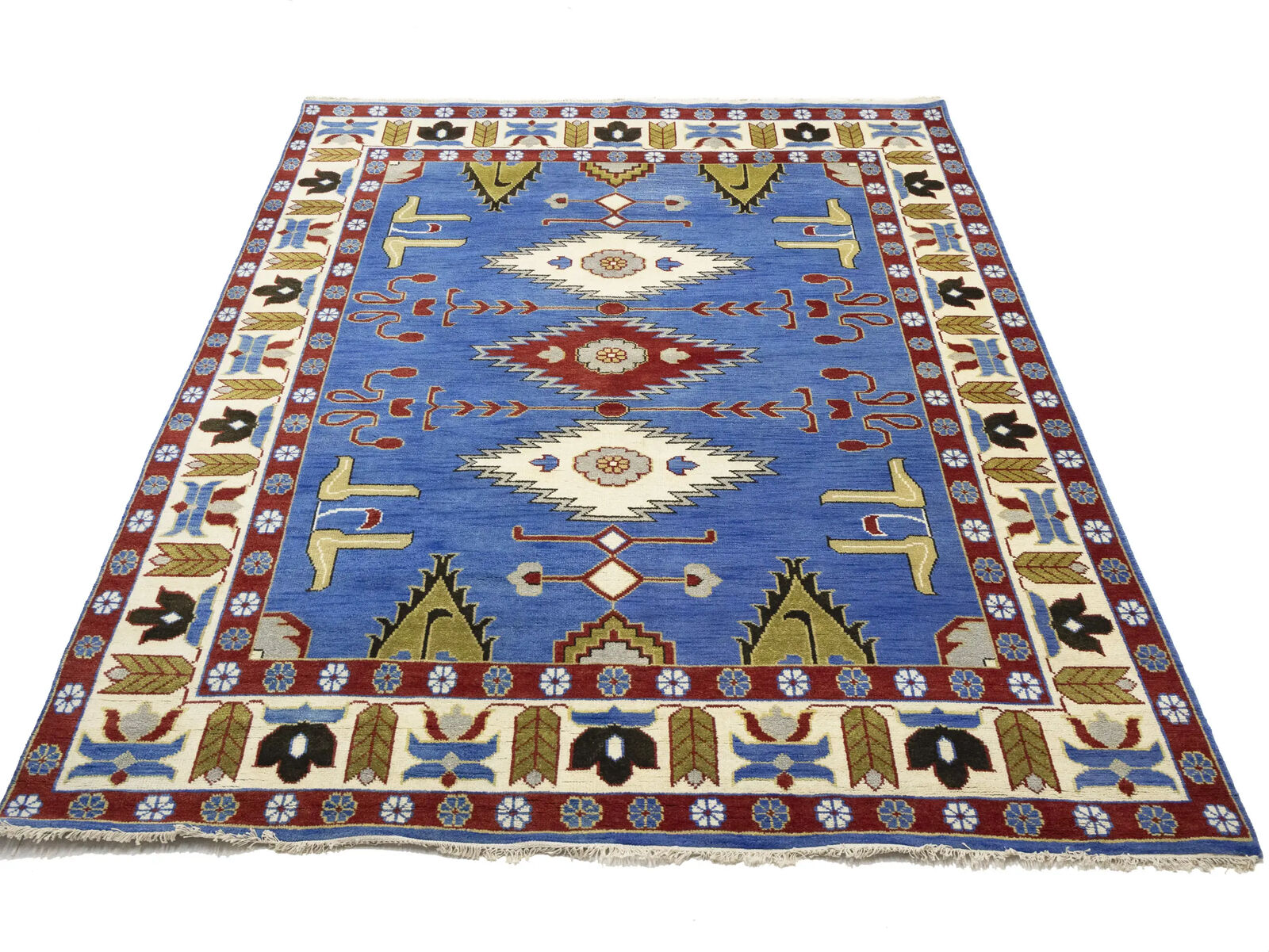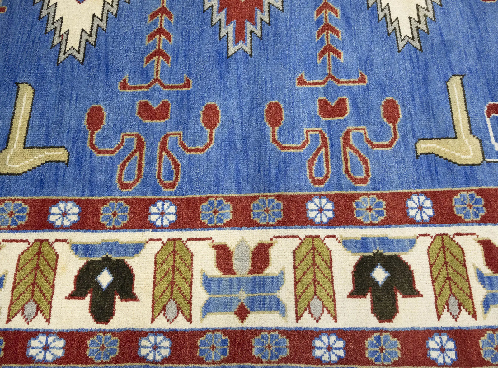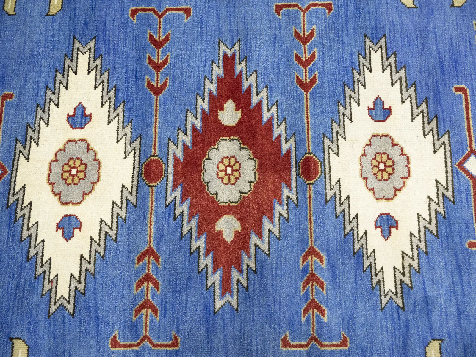 Farmho Boho Blue Geometric Kazak Oriental Rug