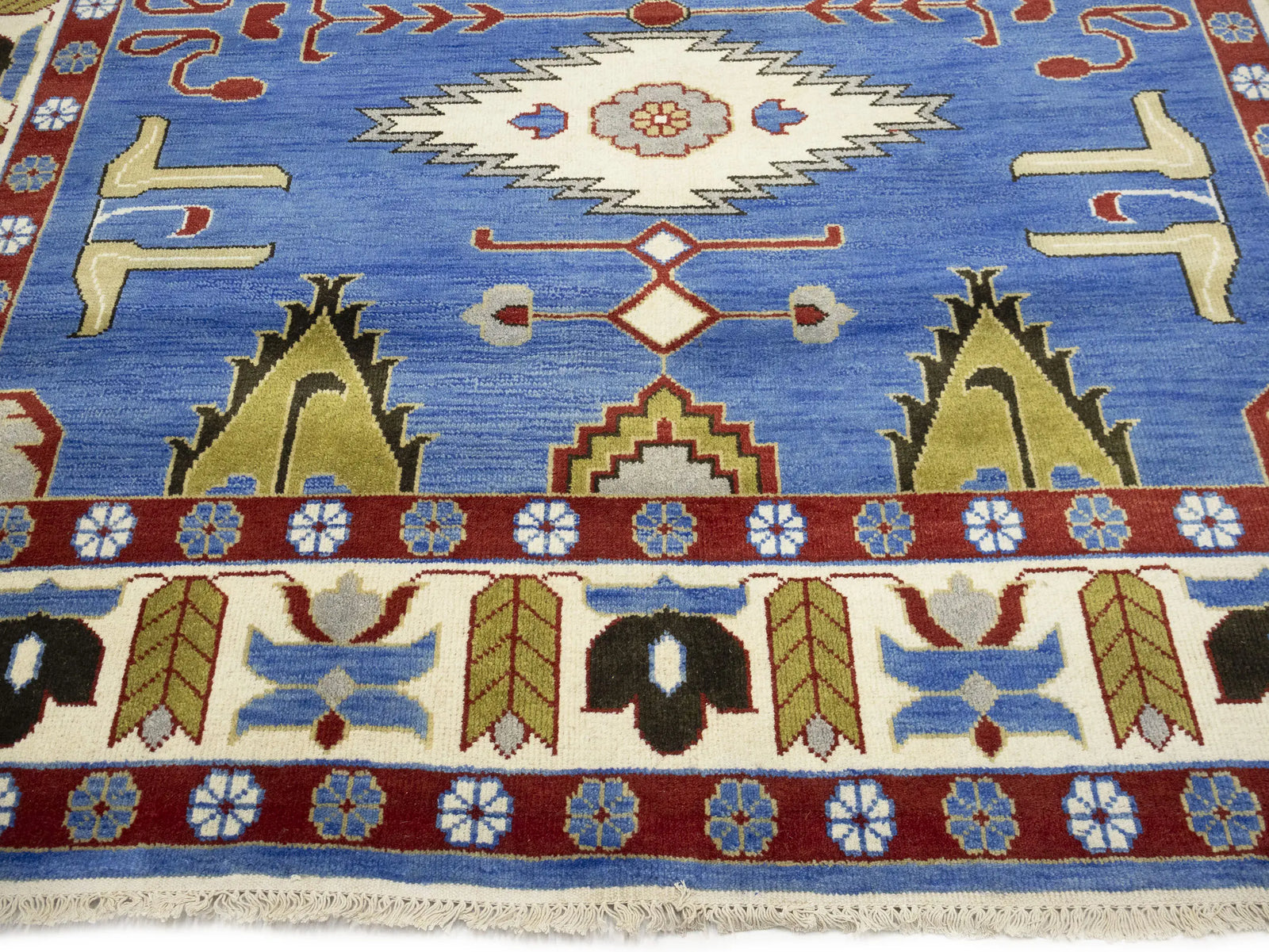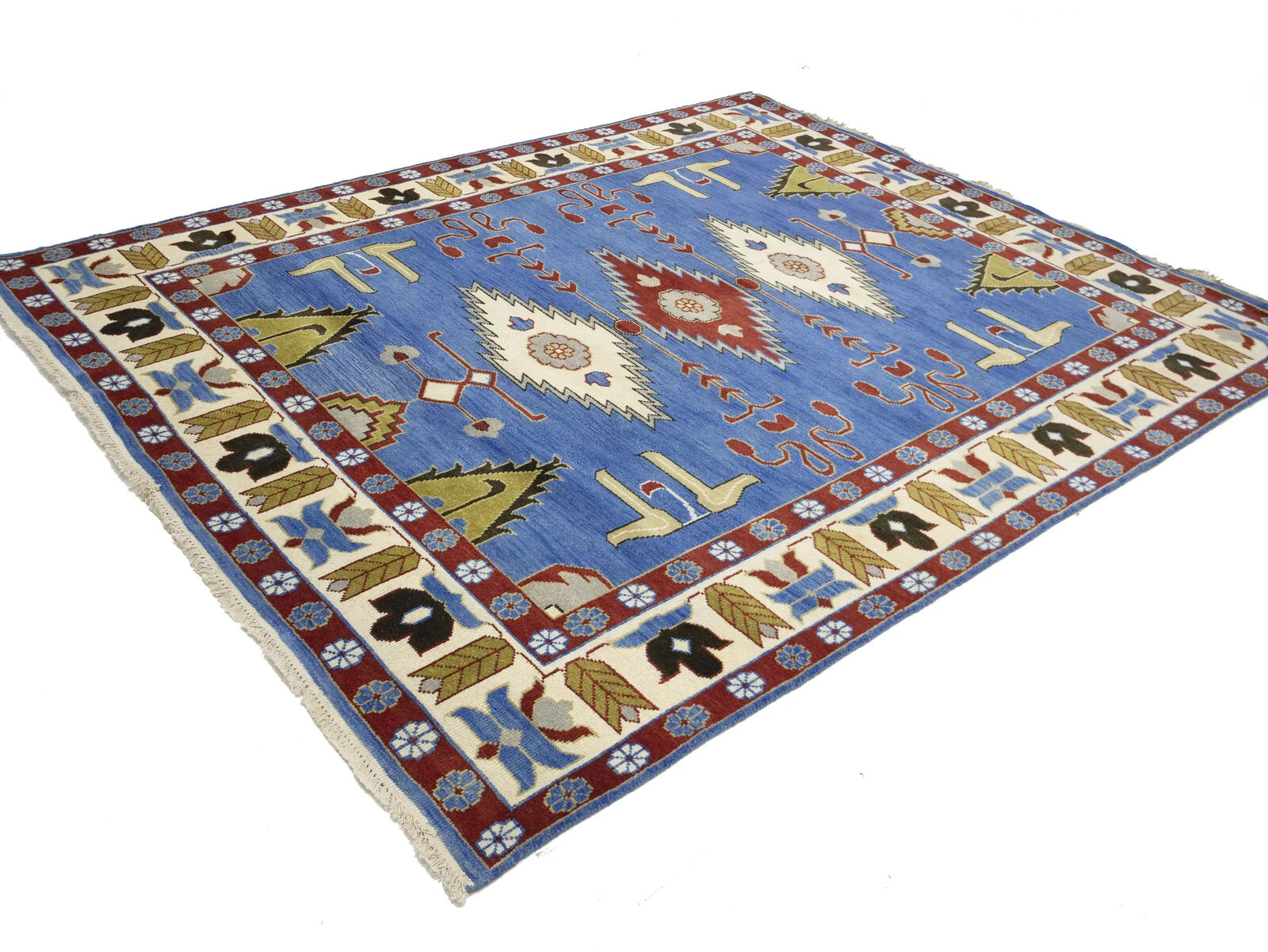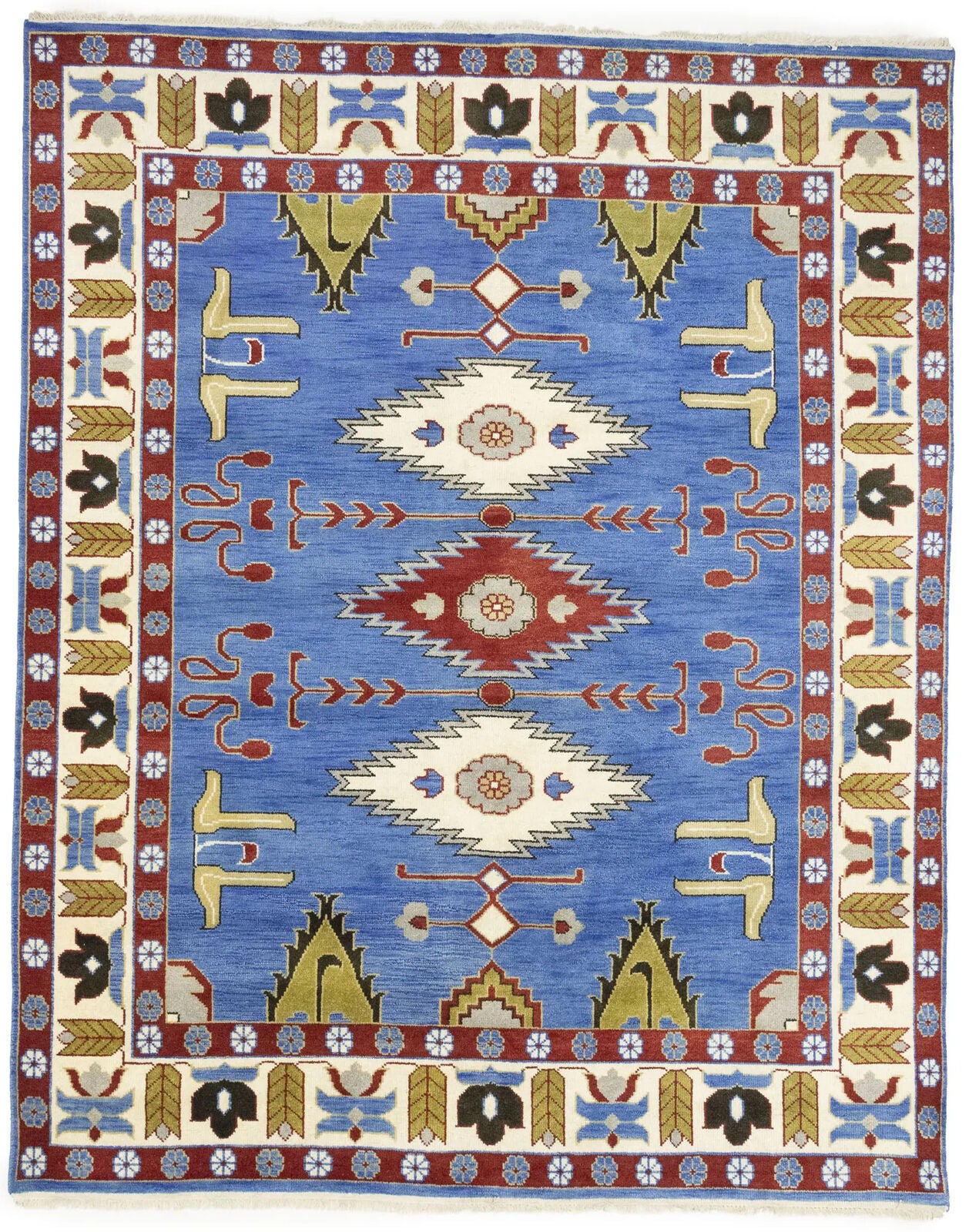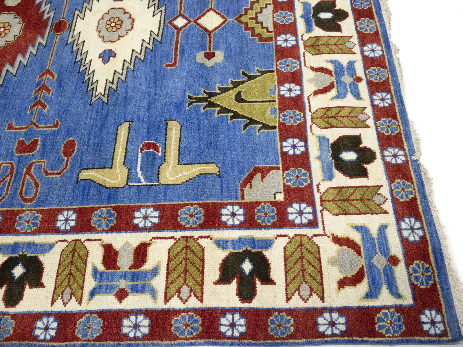 Farmho Boho Blue Geometric Kazak Oriental Rug