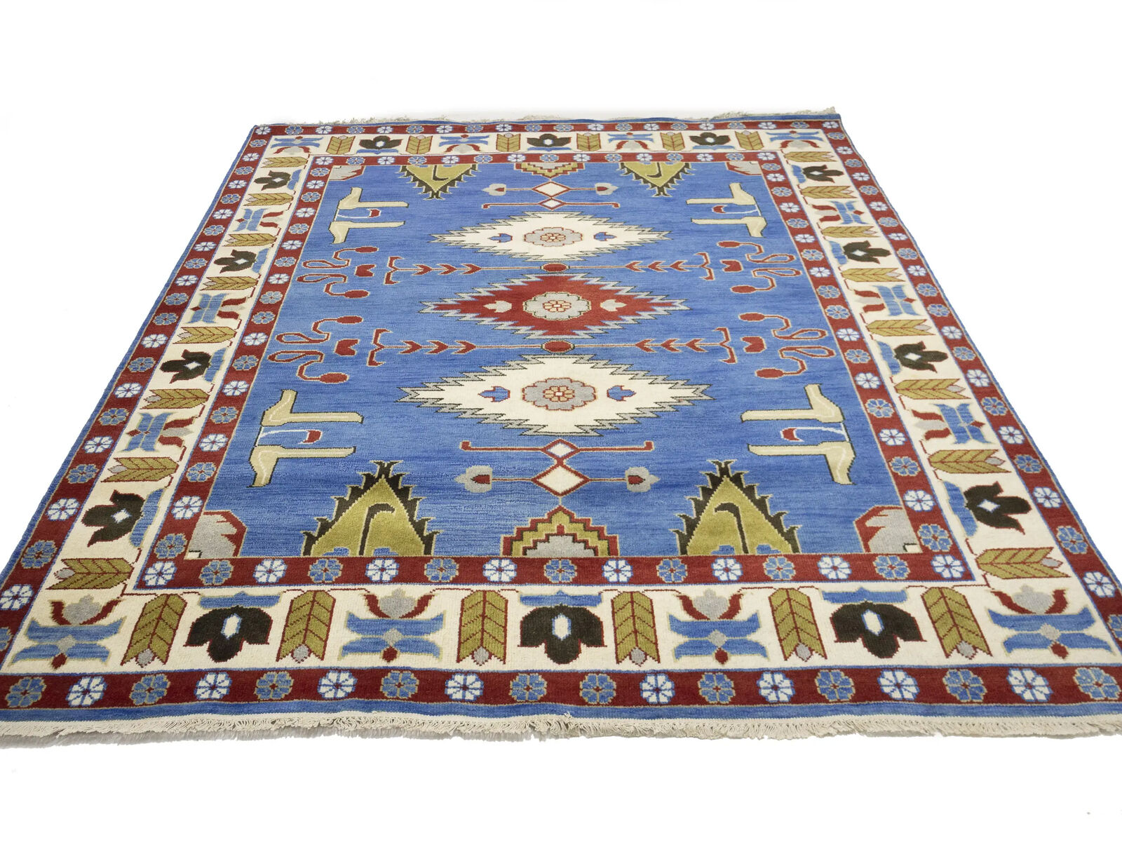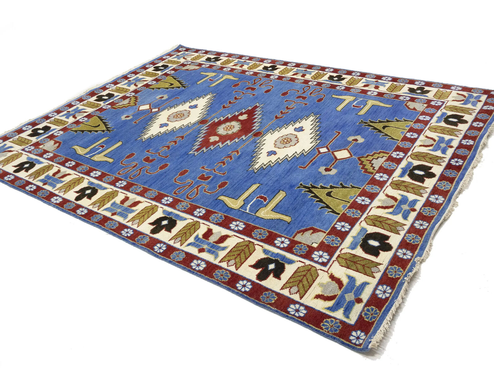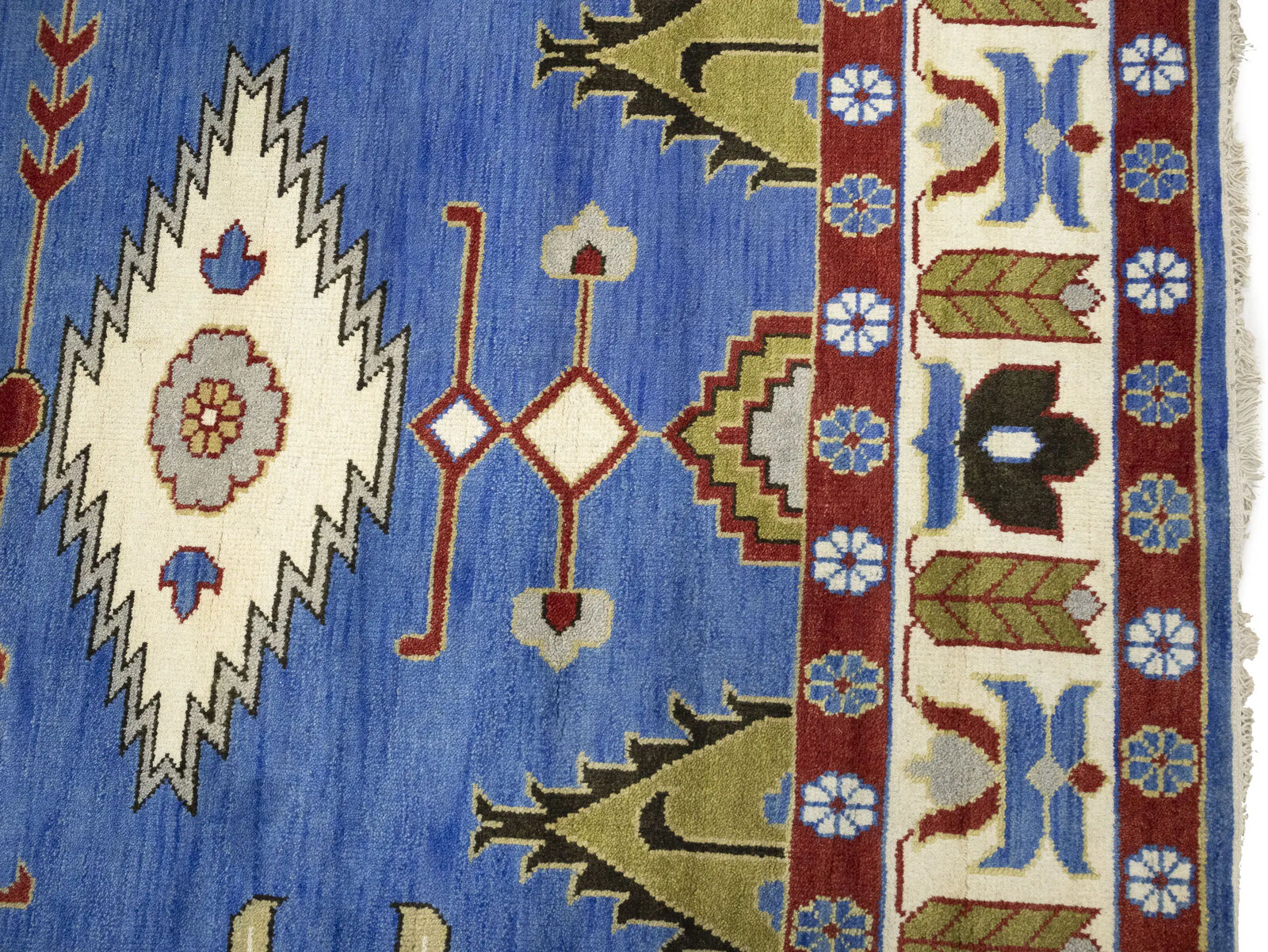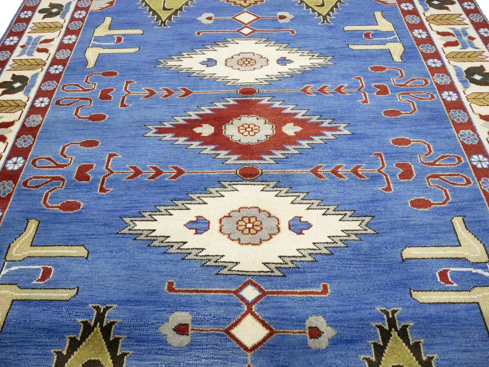 Farmho Boho Blue Geometric Kazak Oriental Rug