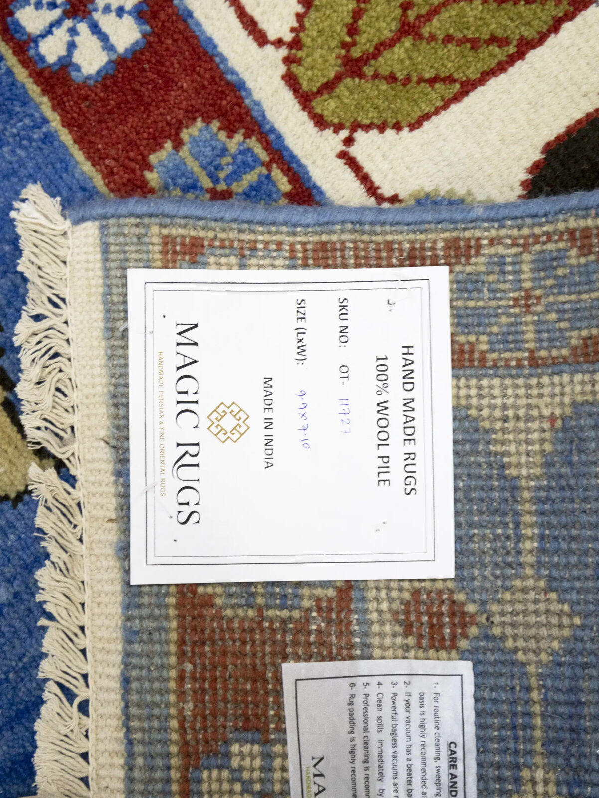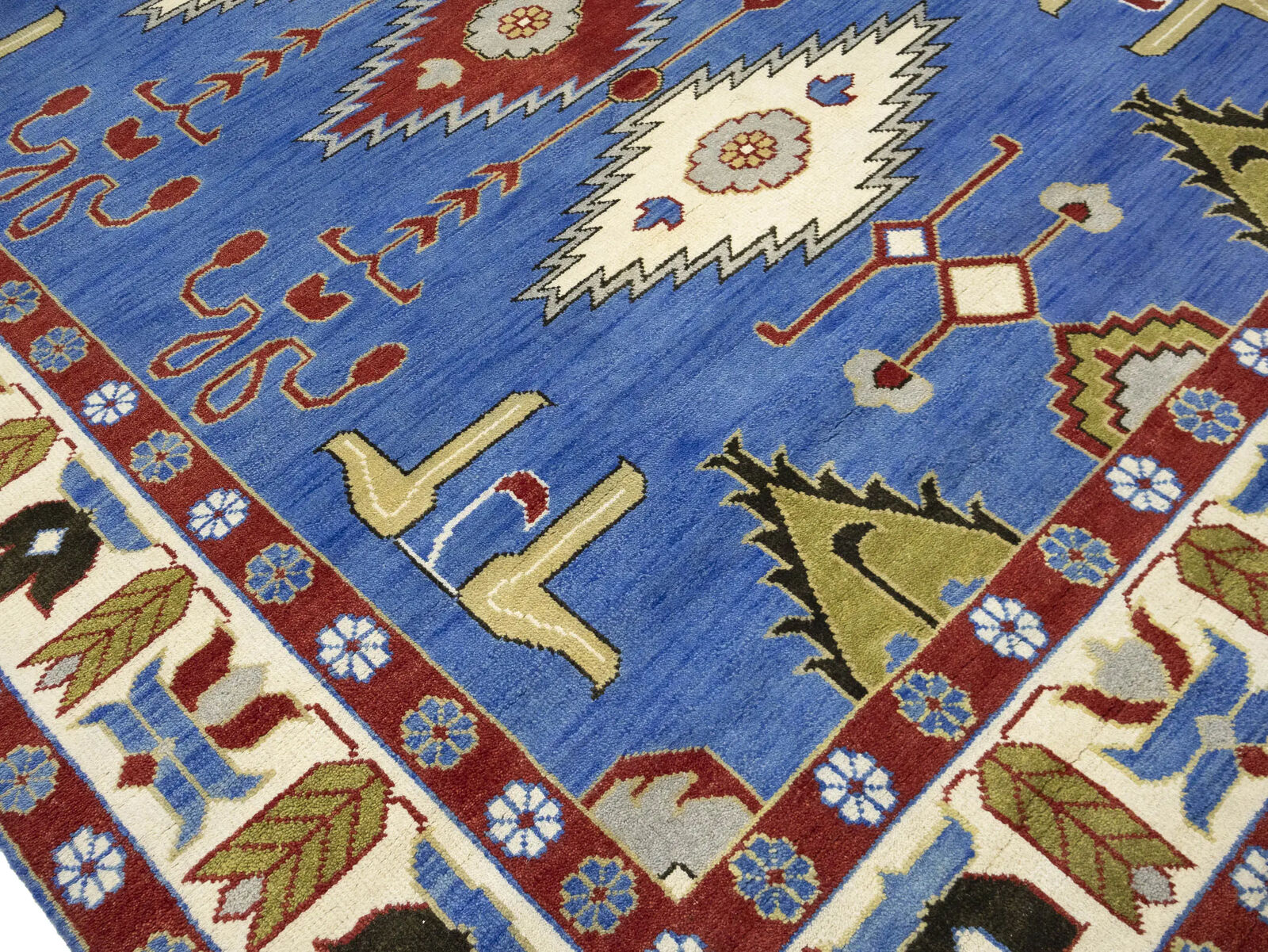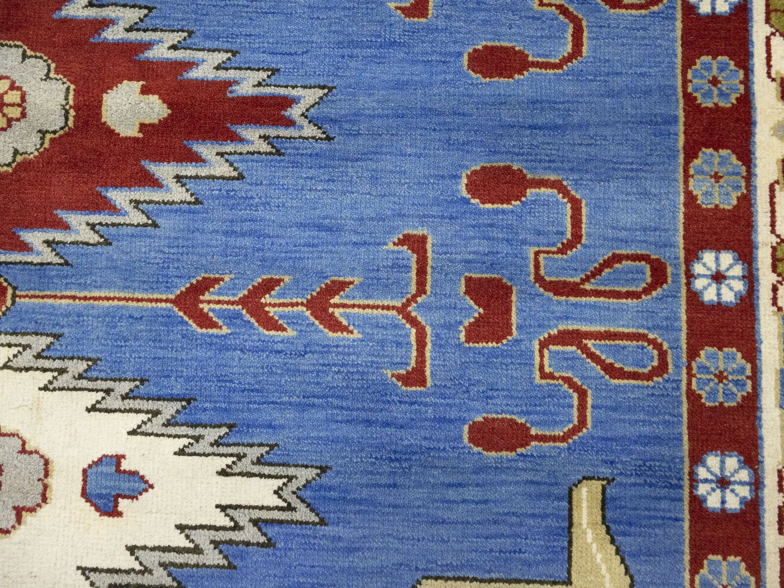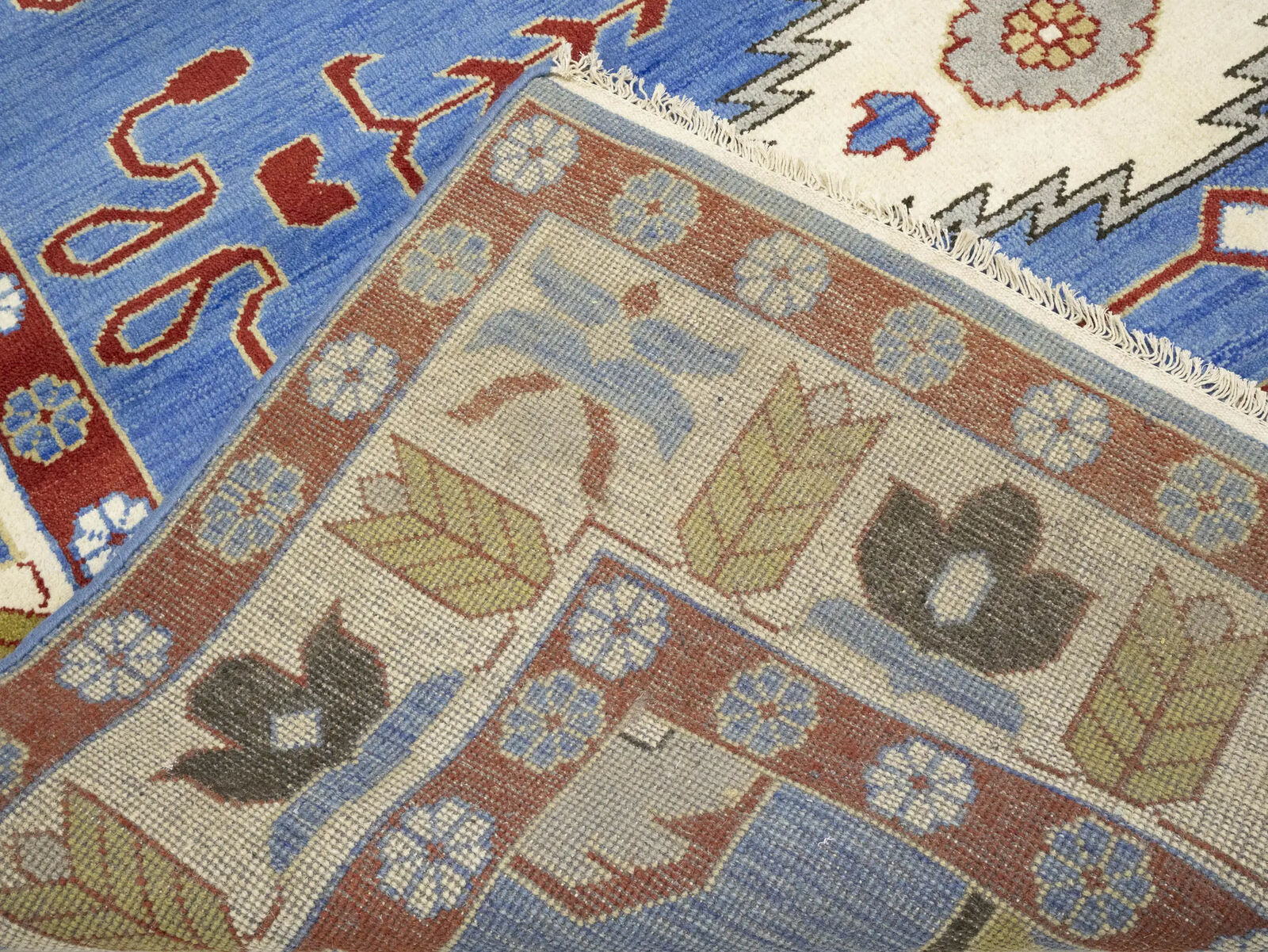 Farmho Boho Blue Geometric Kazak Oriental Rug
